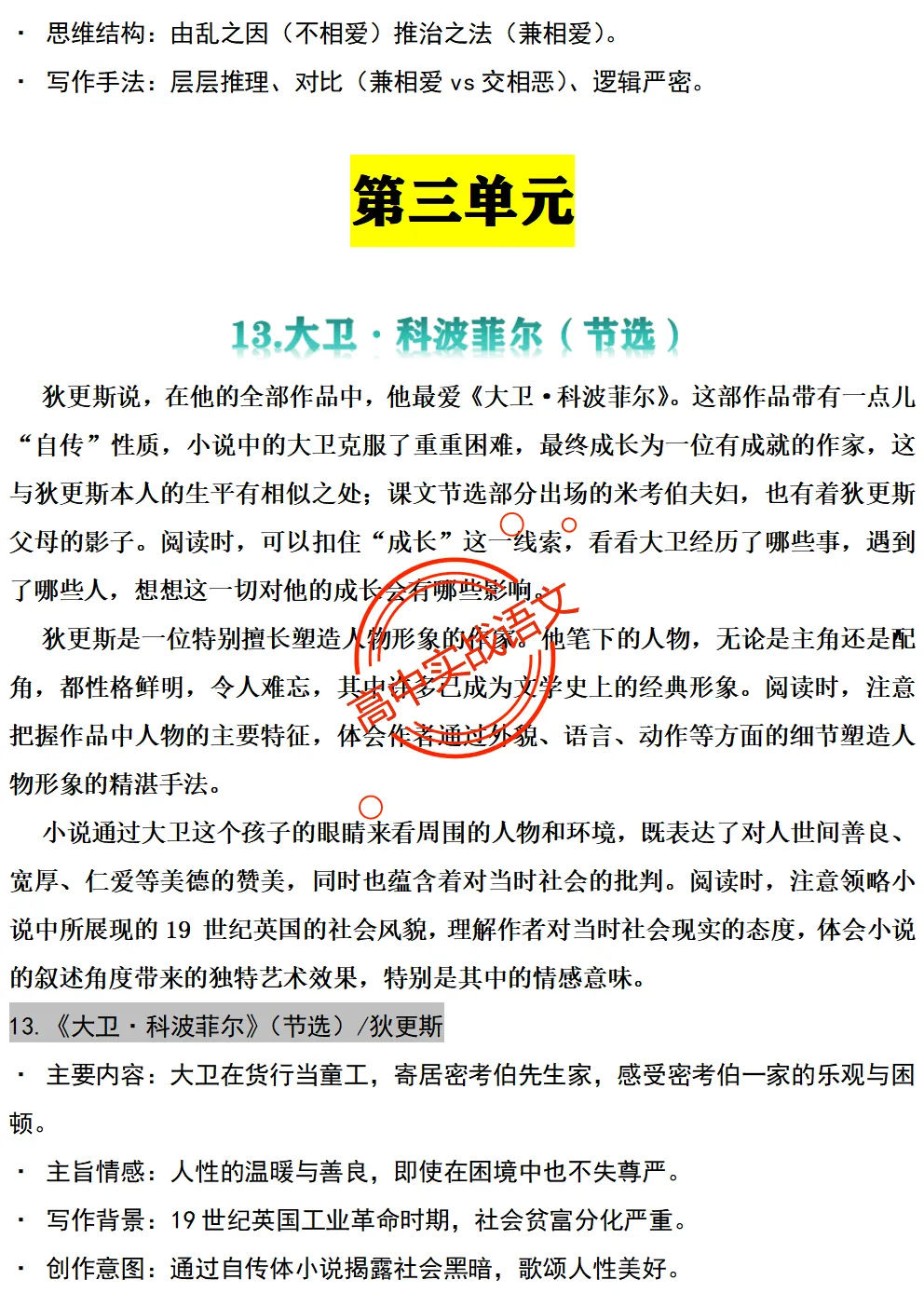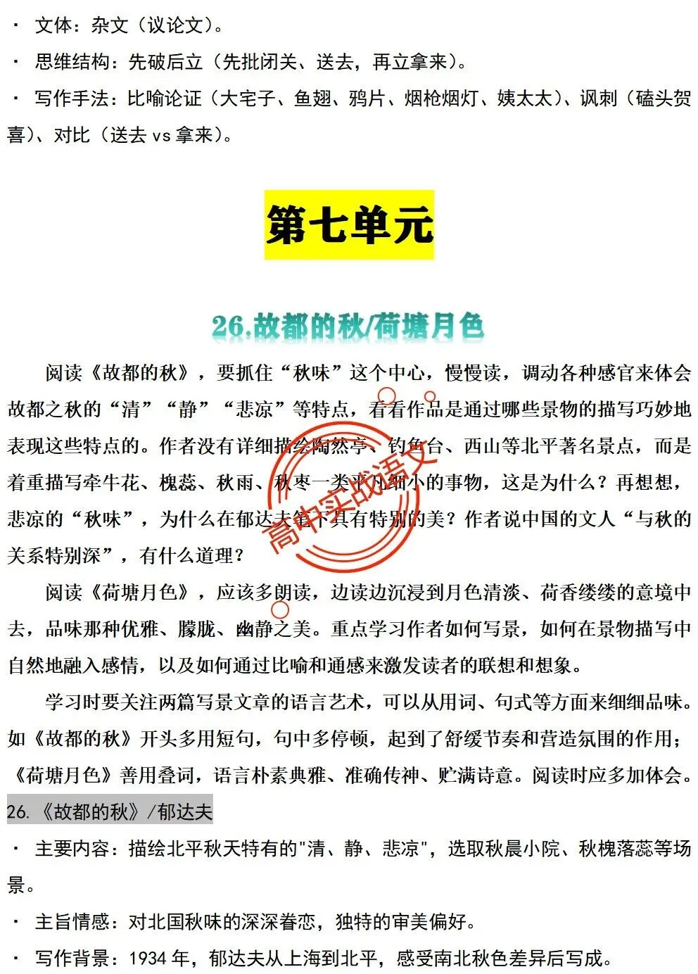 统编【全5册】【小说+散文】考点【逐课梳理】