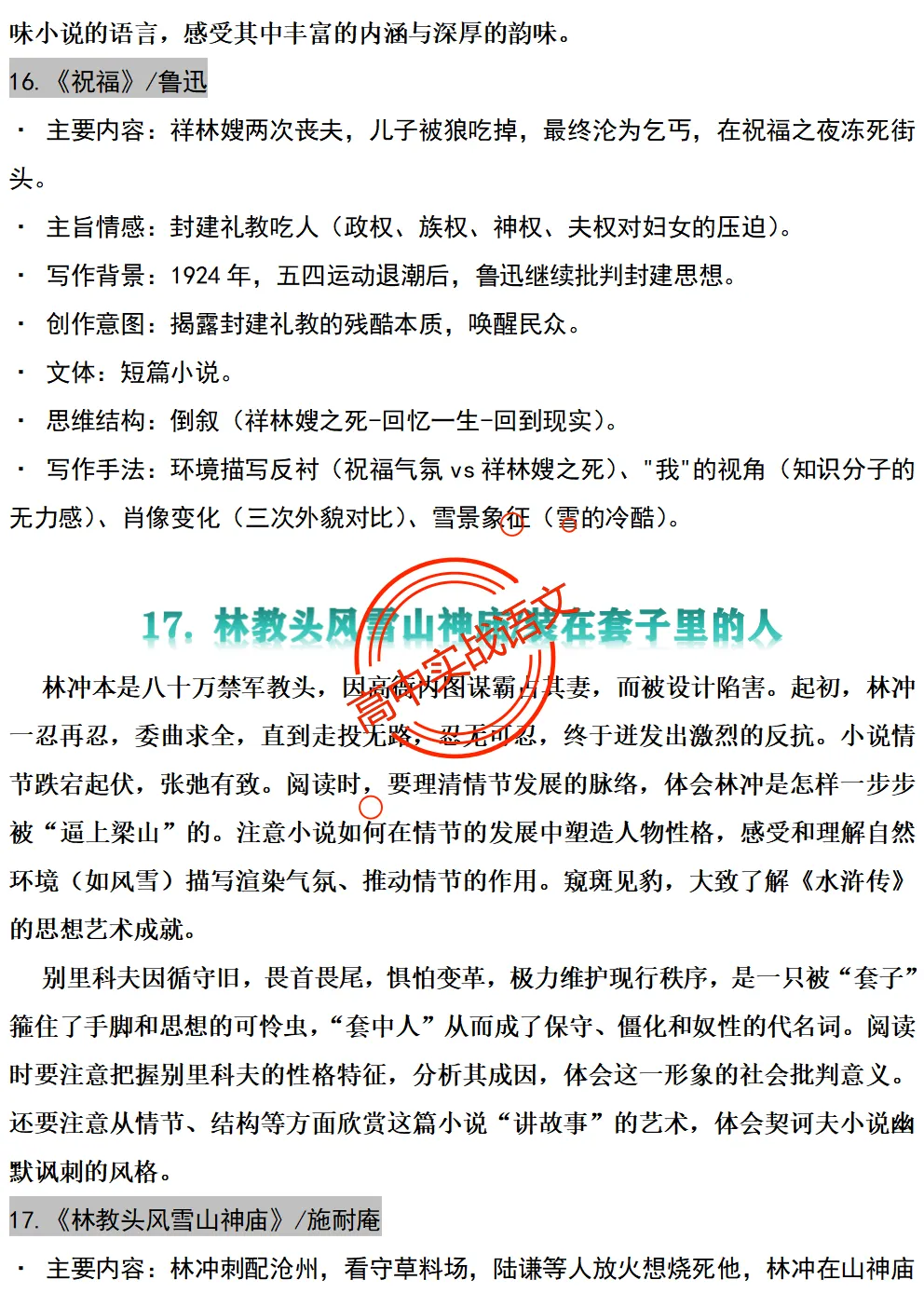【教考结合】一篇《祝福》讲透小说六大命题角度