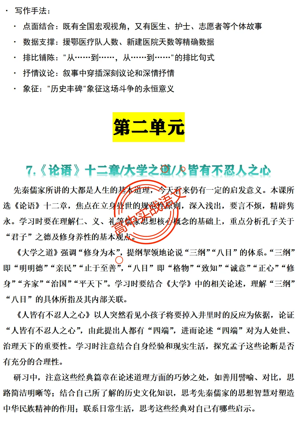 部编【全5册】背诵篇目汇总(含逐段逐句理解)