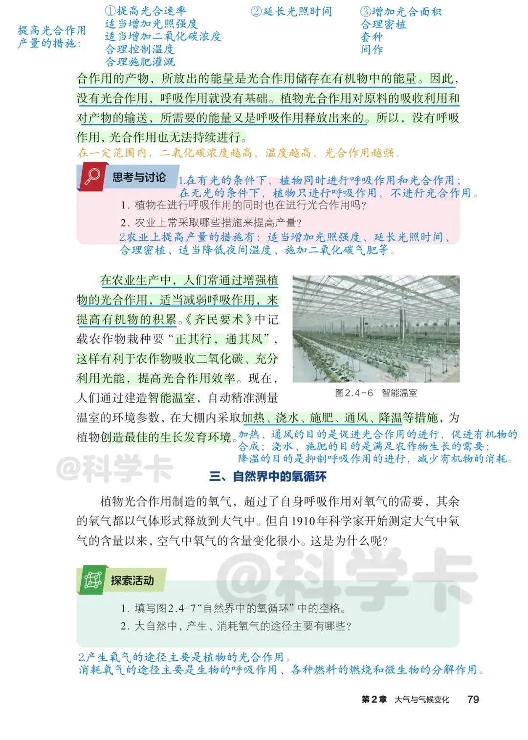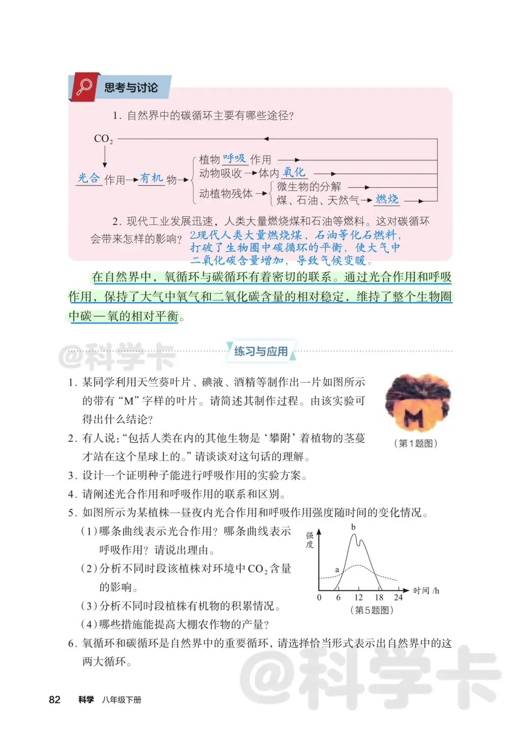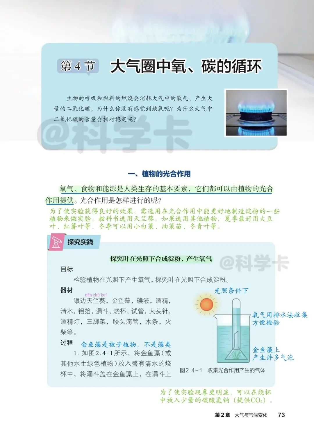 >初中科学八下课本精读丨大气中氧、碳的循环