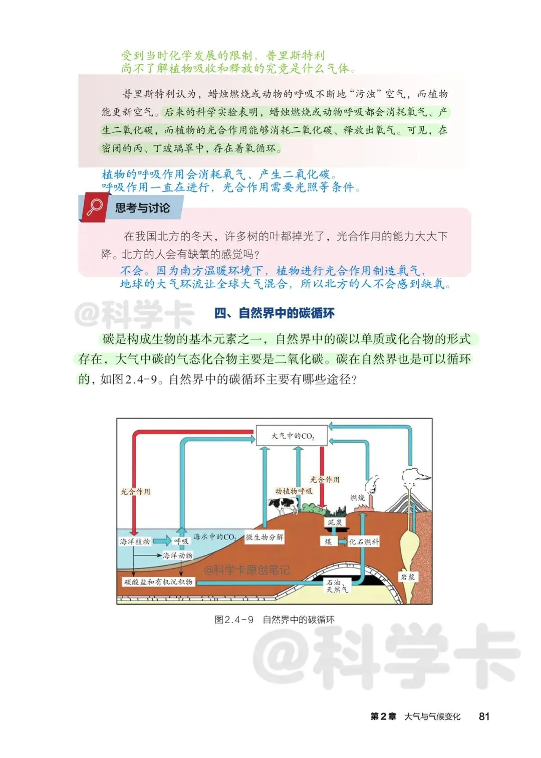 初中科学八下课本精读丨大气中氧、碳的循环