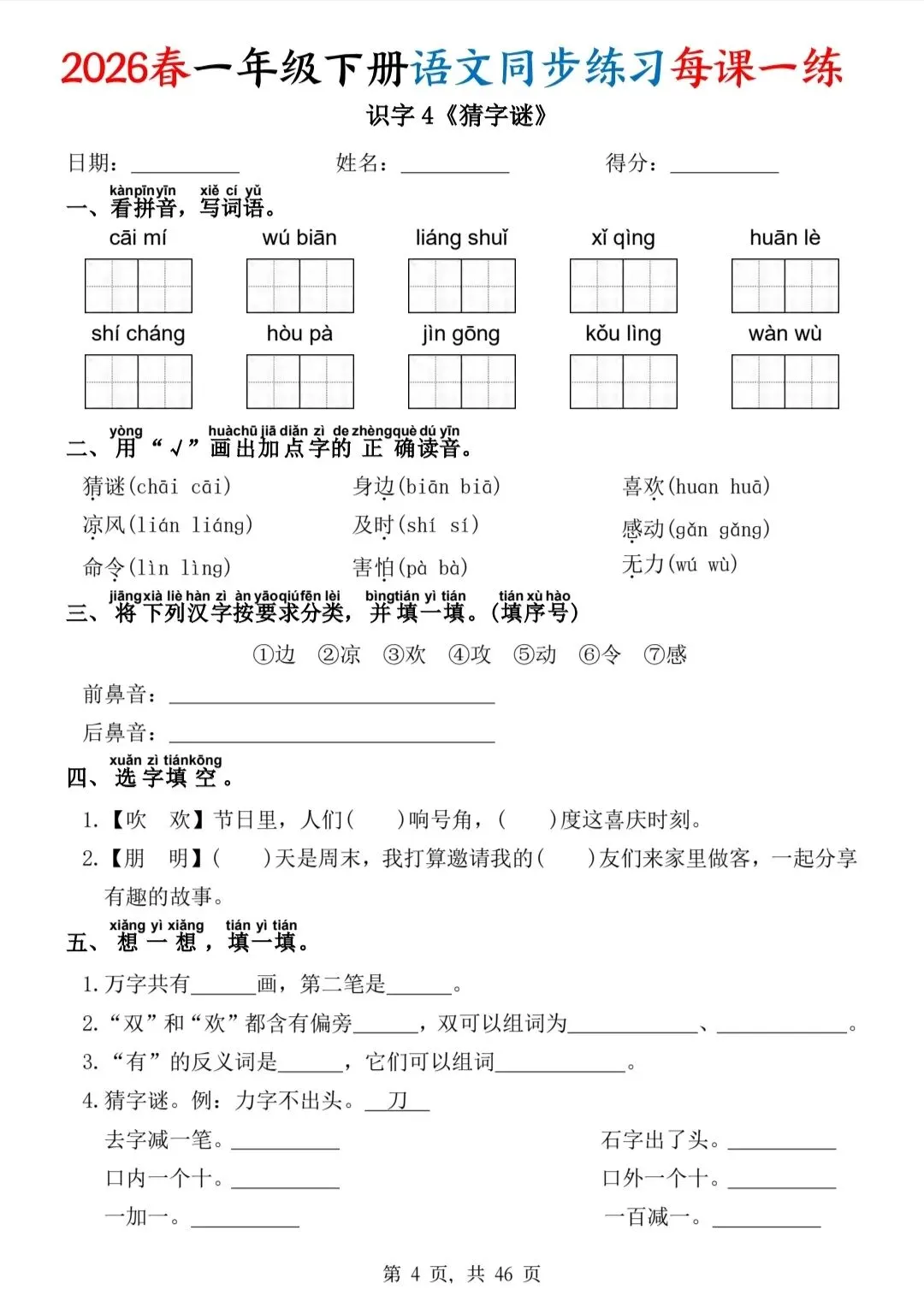 「一下语文同步课本每课一练」,点击链接或复制整段内容,打开「夸克APP」即可获取。