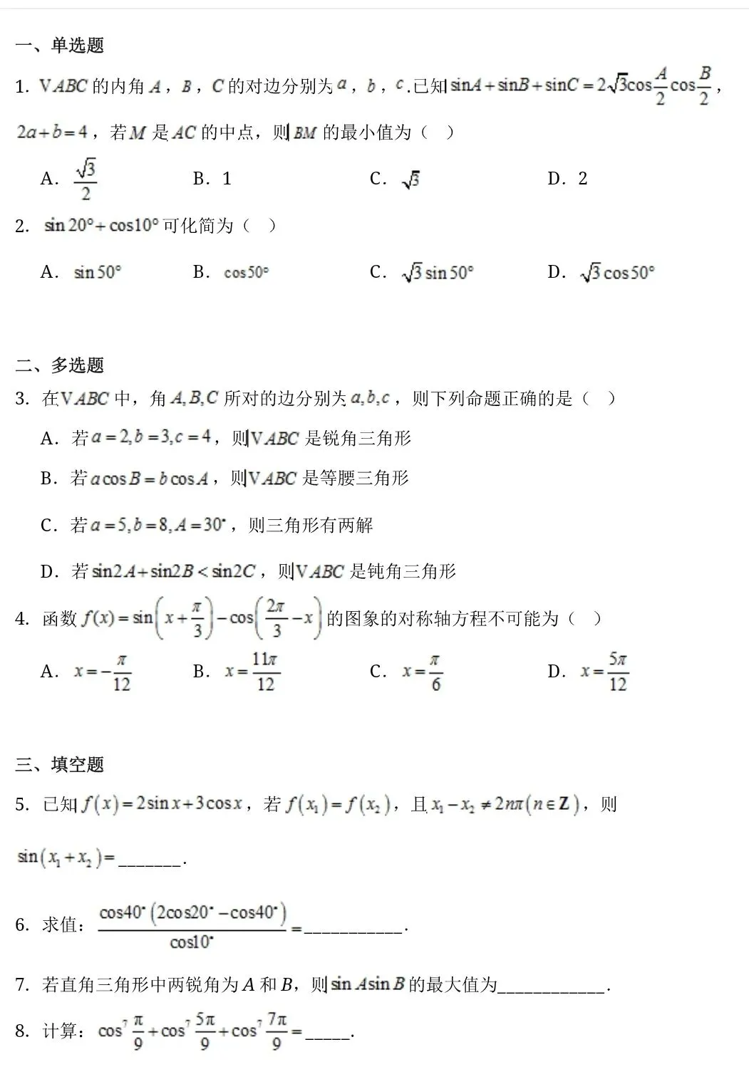 高中数学|从课本与高考题挖出的好用公式--三角恒等变换