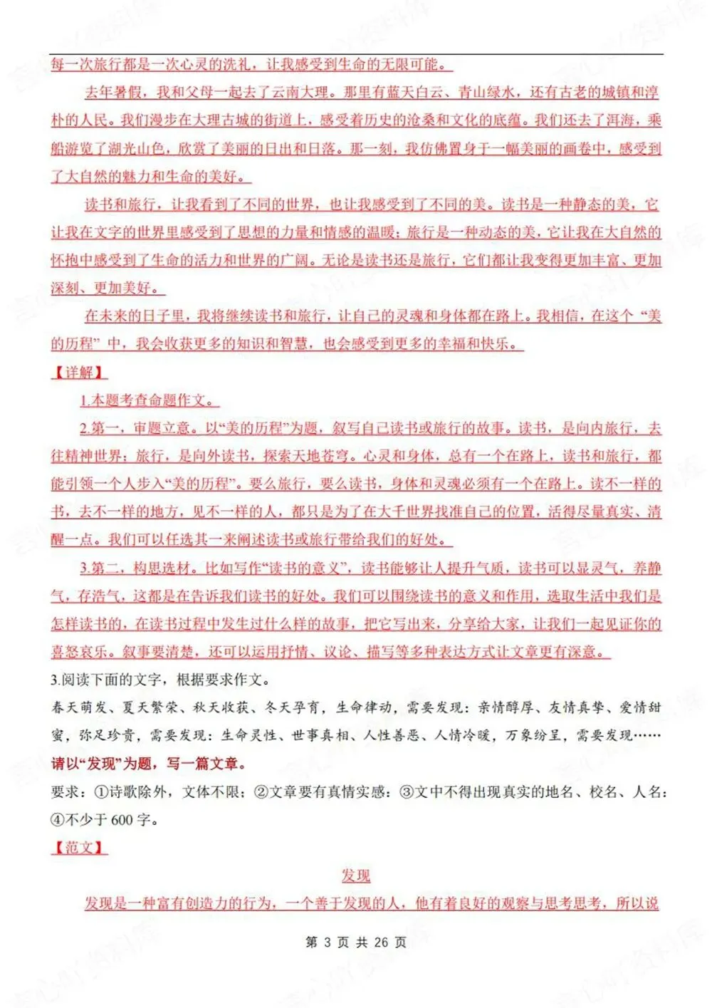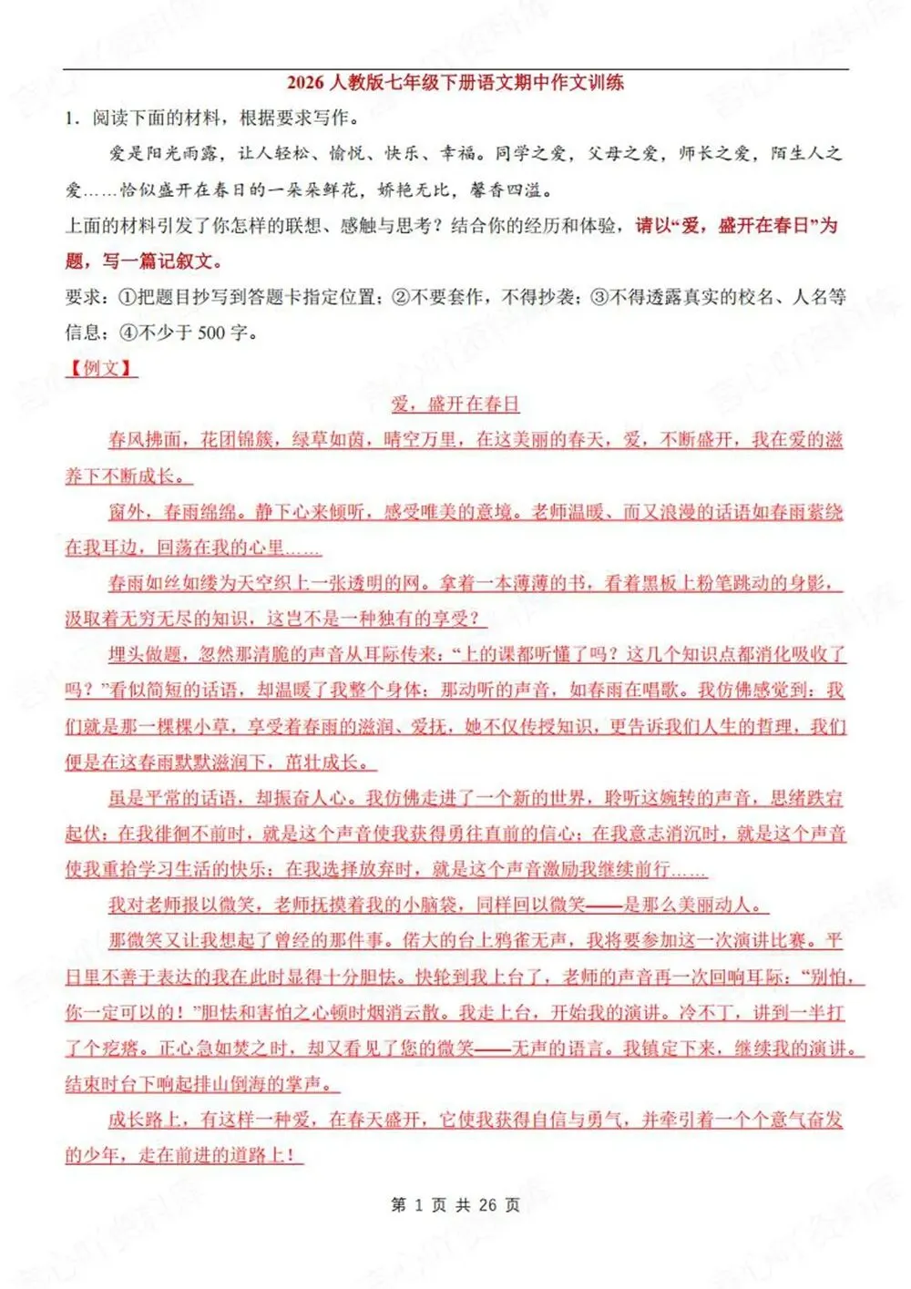 期中归纳,初中语文七年级下新教材初一下册,作文专项练习,CYWH260252,