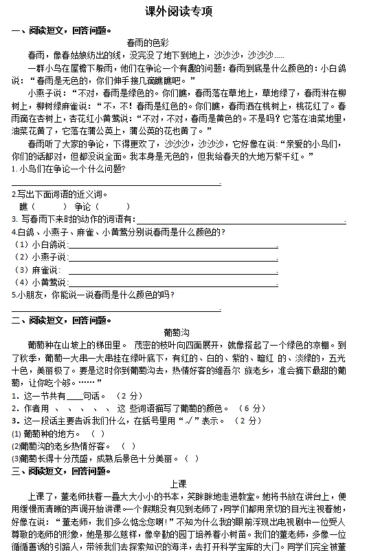 三年级阅读专项