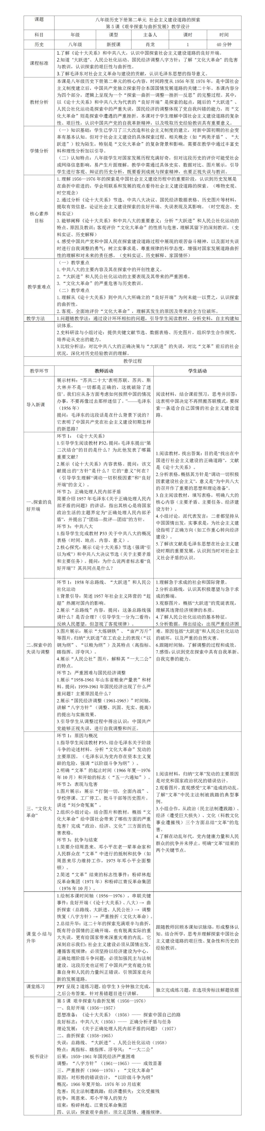 新修初中统编历史教材教学实施主题研修八年级下册《第5课 艰辛探索与曲折发展》