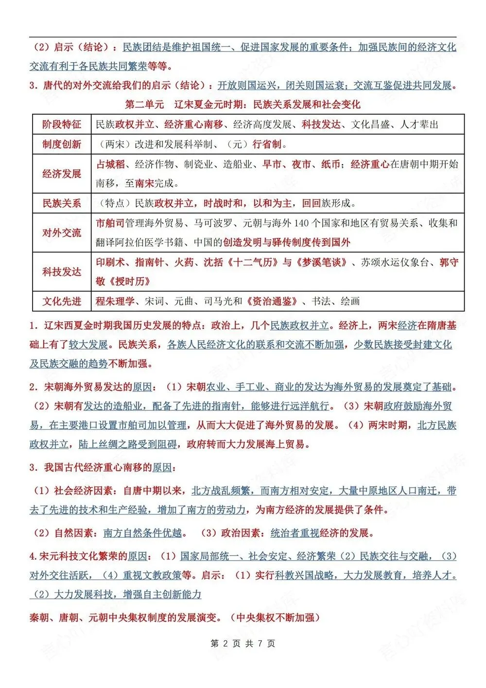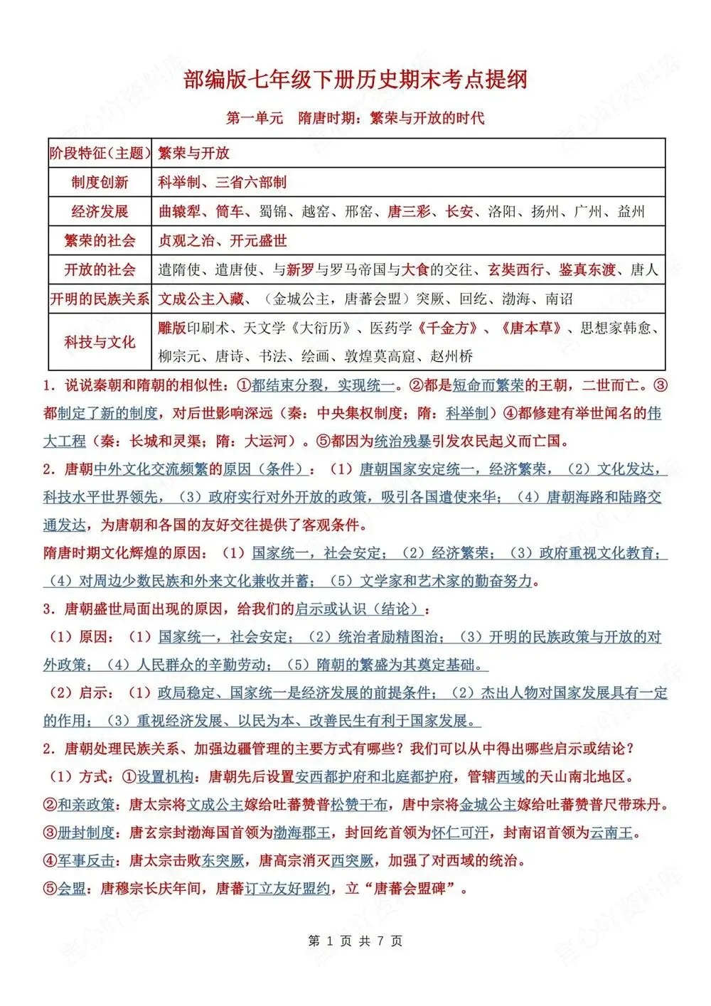 期末复习,初中历史七年级下(全)新教材初一下册,重要考点提纲归纳,CLSH260256,