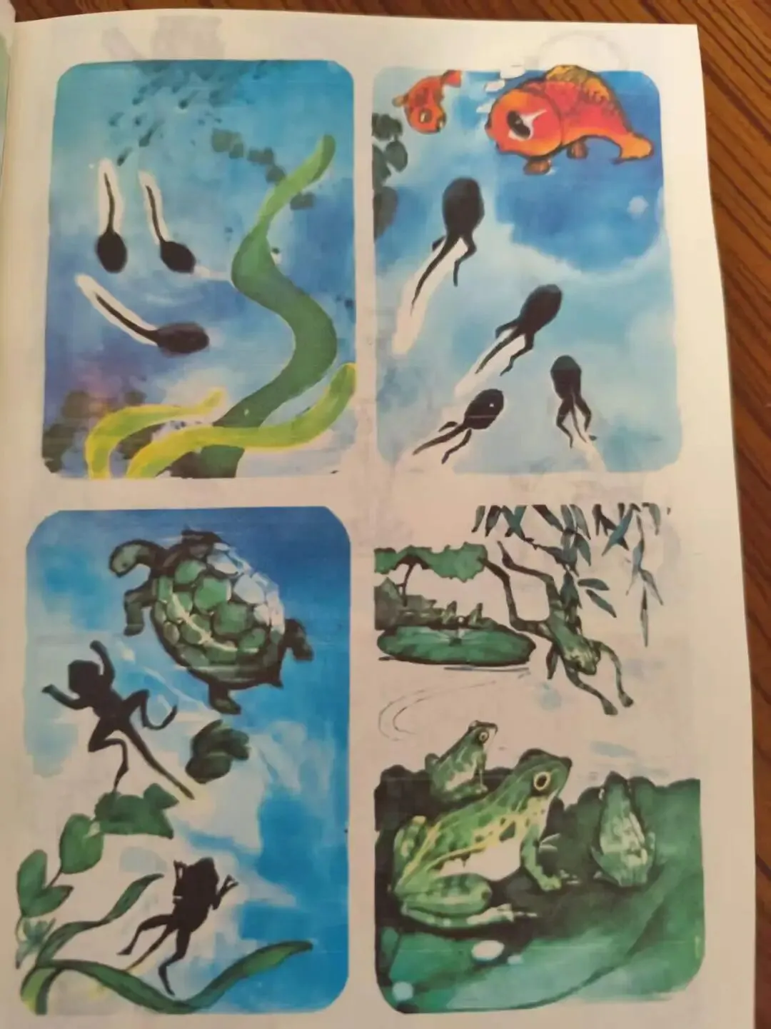 河岸上,柳树发芽了,柔软的枝条随着微风轻轻地摆动。一只青蛙从洞里钻出来,在河边慢慢地爬着。