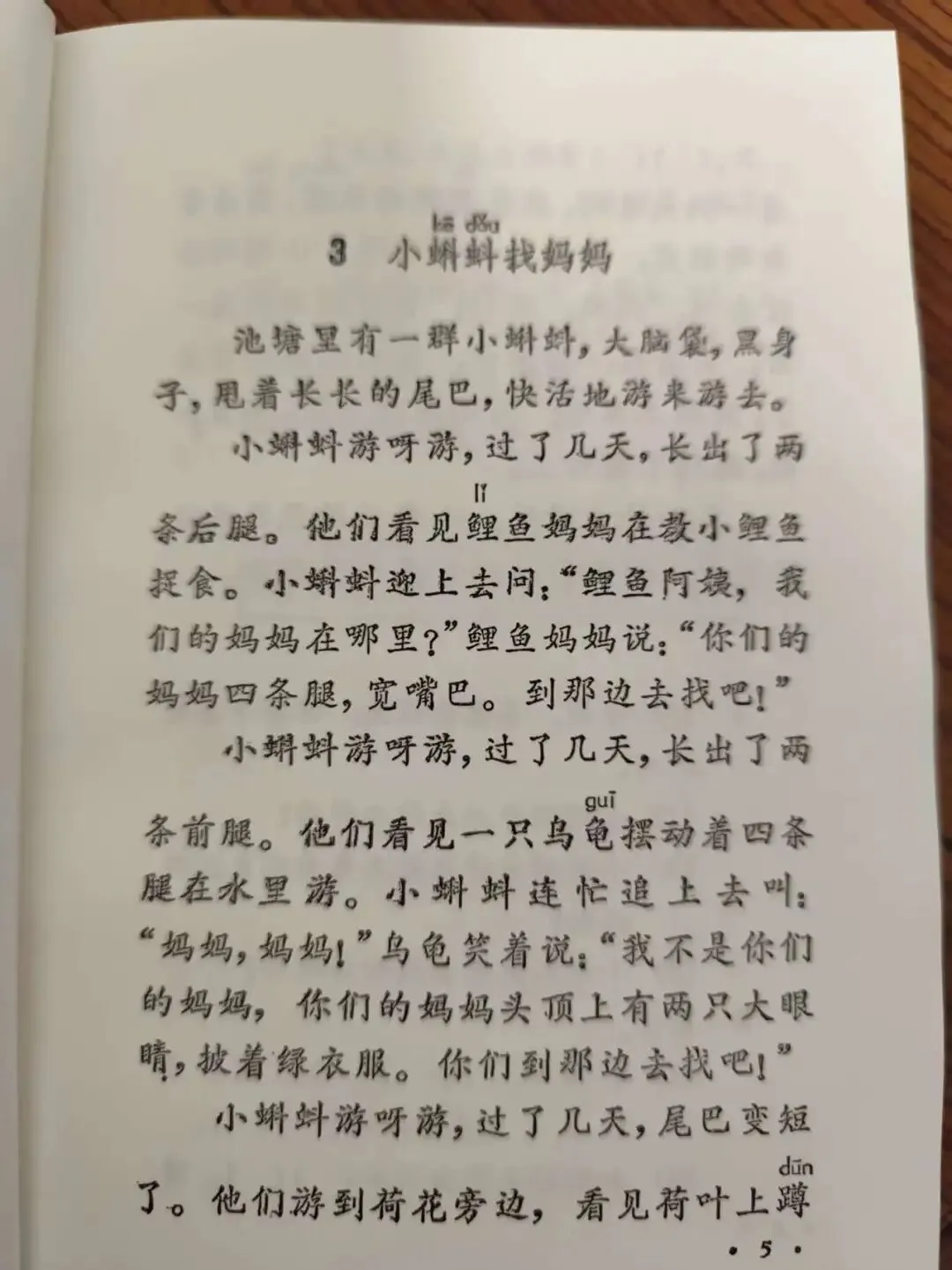 小河里,连一片薄冰也找不到了。水慢慢地流着。微风吹来,水面泛起鱼鳞似的波纹。几只鸭子跳进水里,快活地游来游去。