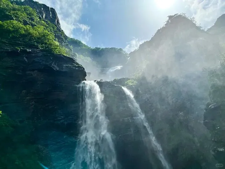 大口瀑布是庐山瀑布群中的重要组成部分,瀑布从高处飞泻而下,气势磅礴,水势汹涌,在阳光的照耀下,有时还能看到绚丽的彩虹横跨在瀑布之上,景色十分迷人。瀑布周边植被丰富,绿树成荫,为整个景观增添了几分清幽与秀丽。