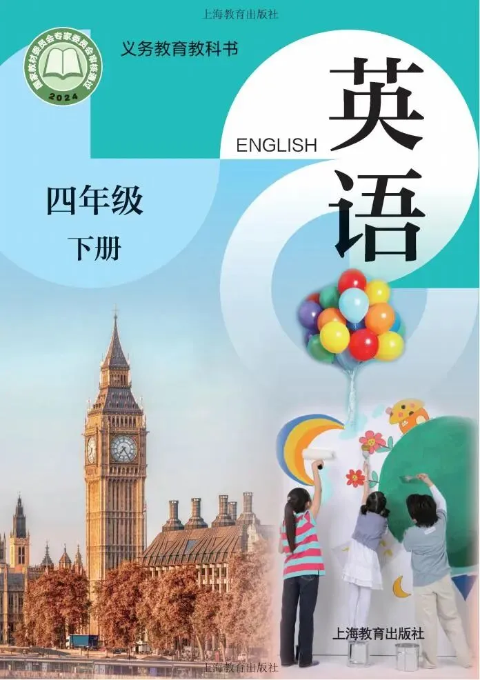 上海教育出版社出版的中小学英语教材有“六三学制”和“五四学制”两个系列。上海地区是五四学制,采用“五四”版。其他省市大都采用了“六三”版,此版本四年级下学期的封面如下: