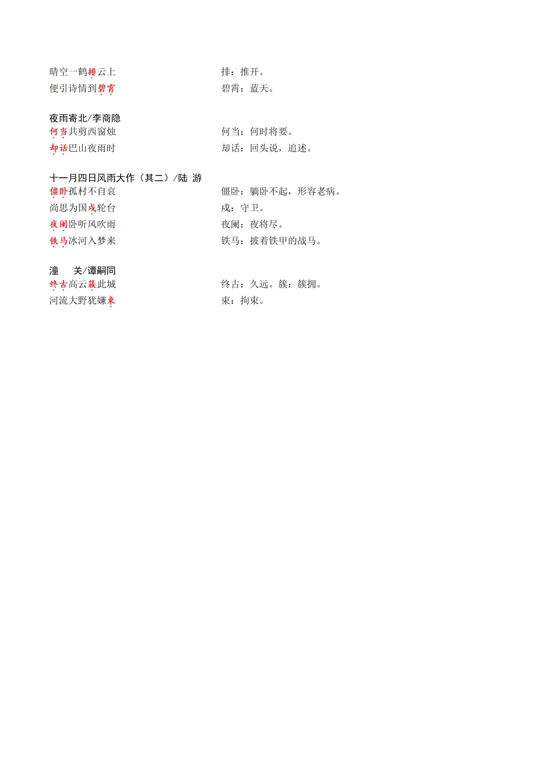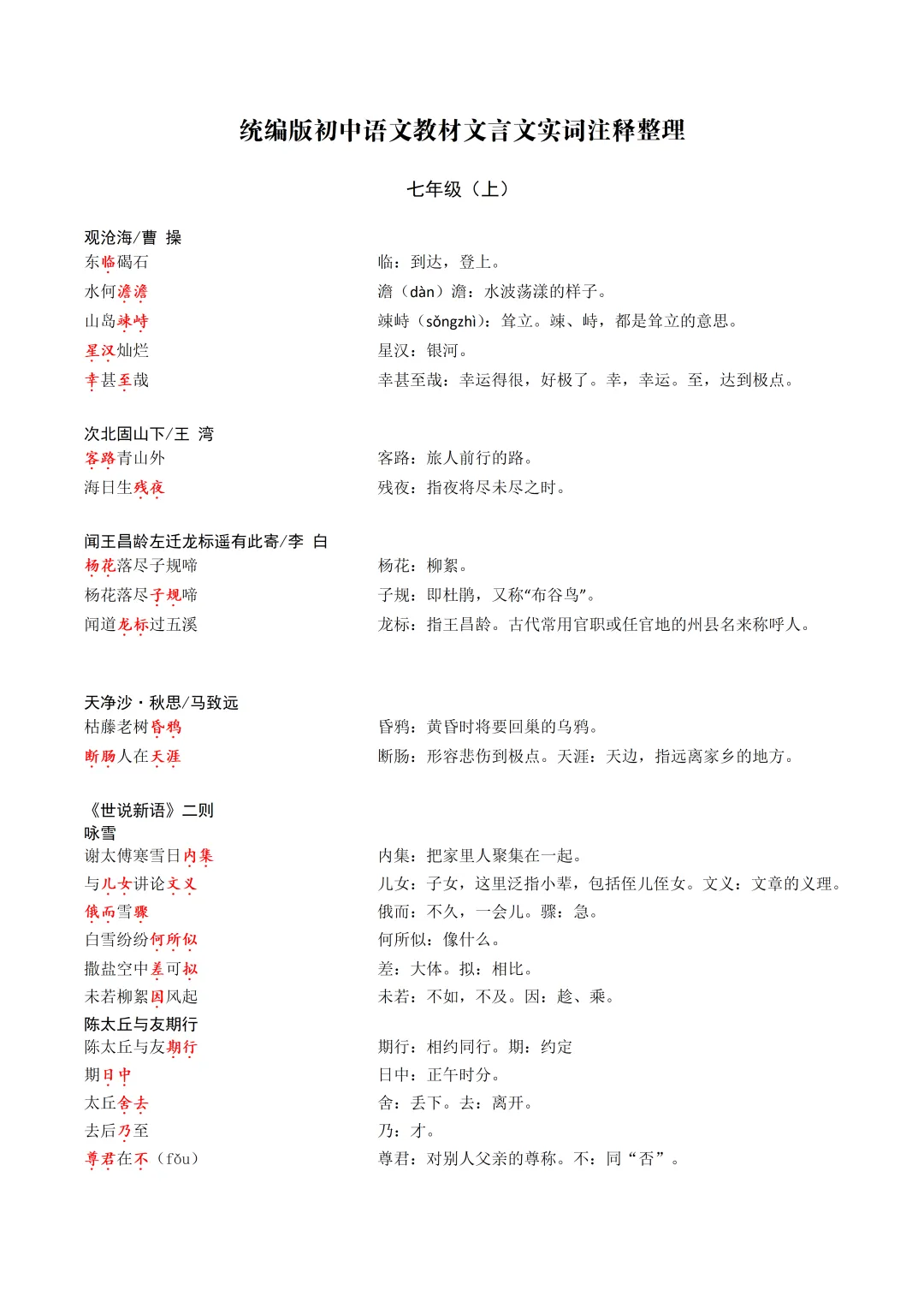 >统编版初中语文教材文言文实词注释整理七年级上册
