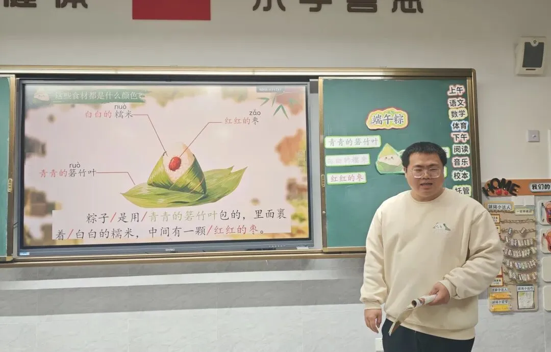 3.表达训练重逻辑:针对“青青的、白白的、红红的”等叠词,可通过词语排序、视频配音等方式,让学生自主发现包粽子“由外到内”的表达顺序,深化文本逻辑理解。