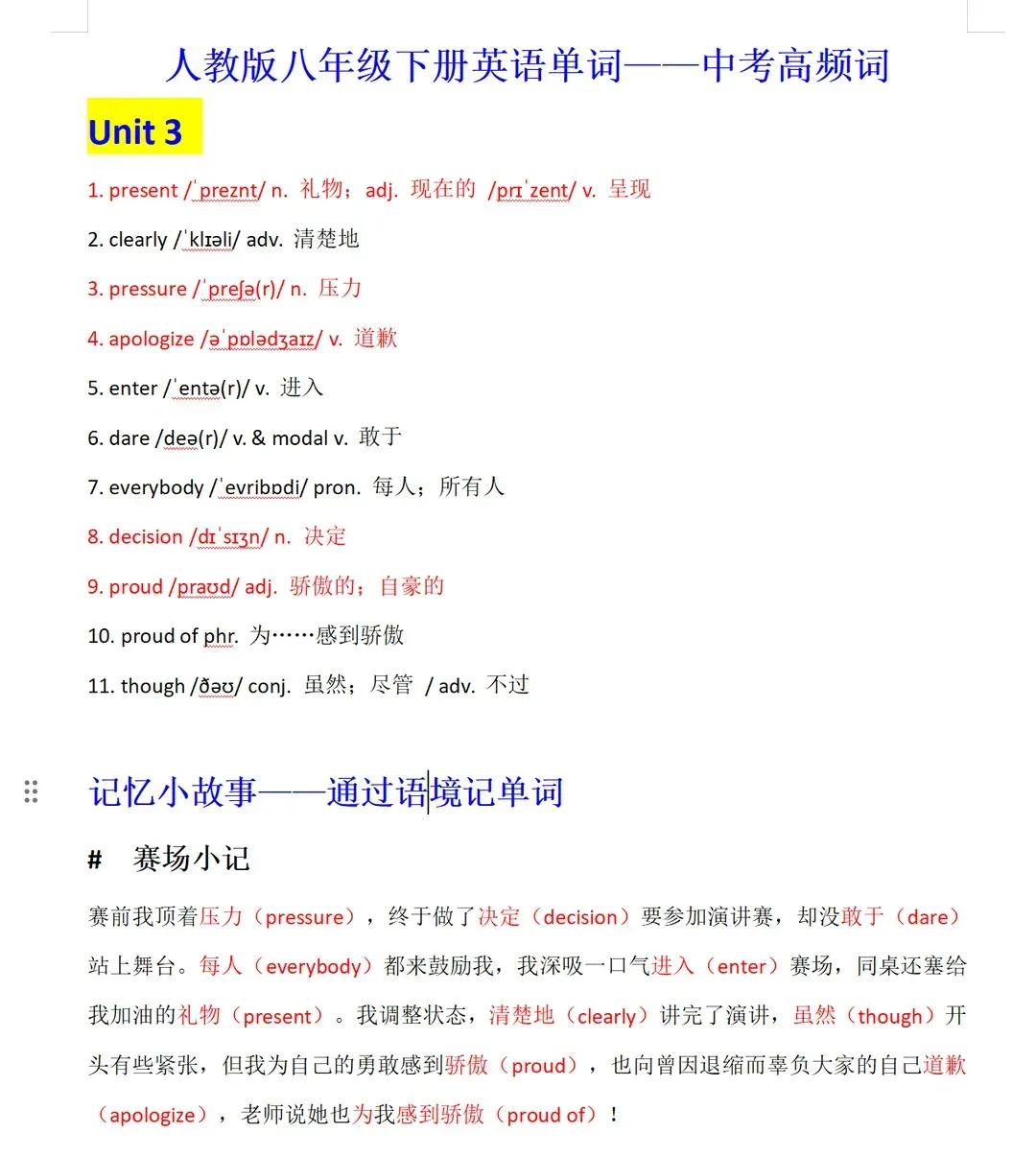 2026春新教材人教版初中英语电子课本八年级下册新教材电子书+单词表详解版+知识拓展