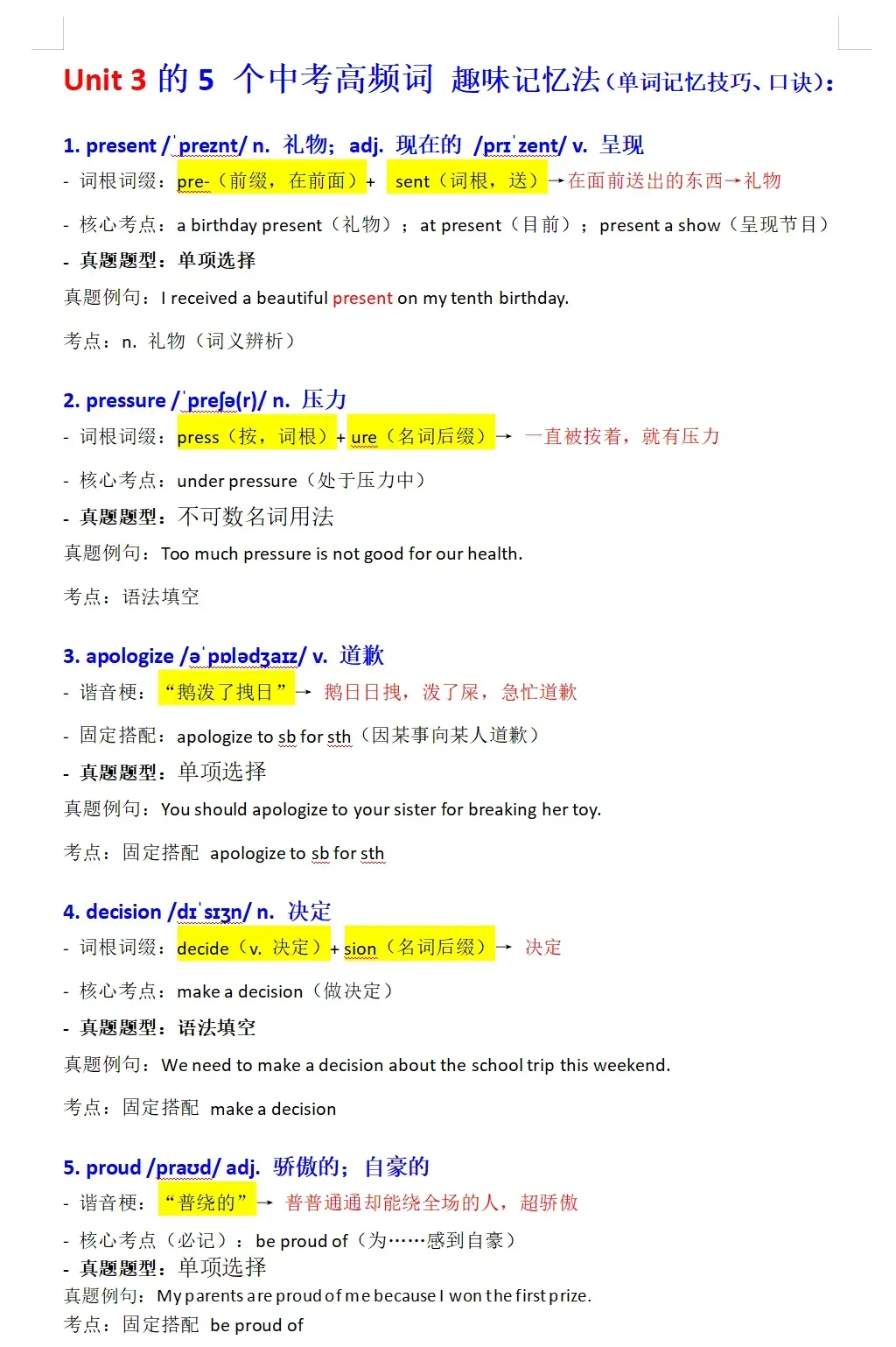 完整版知识点+单词+总结+课堂笔记