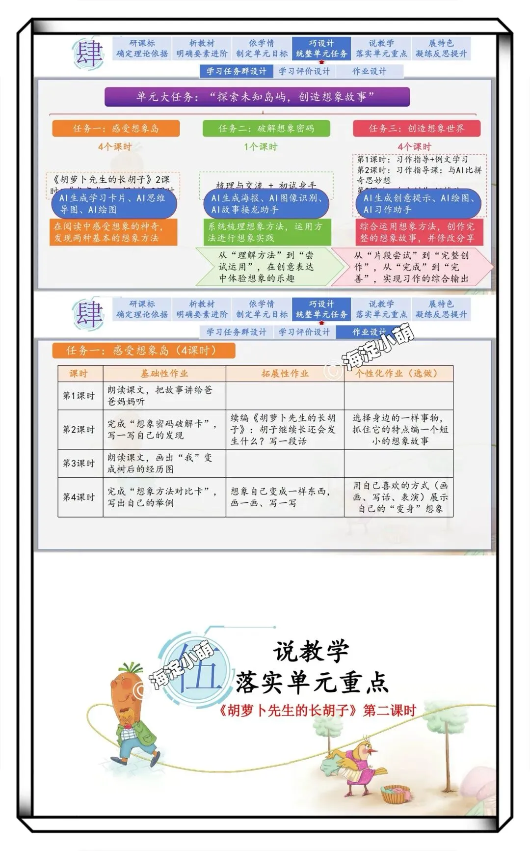 新教材-小学语文三下五单元整体说课/单元设计/解读++《胡萝卜先生的长胡子》