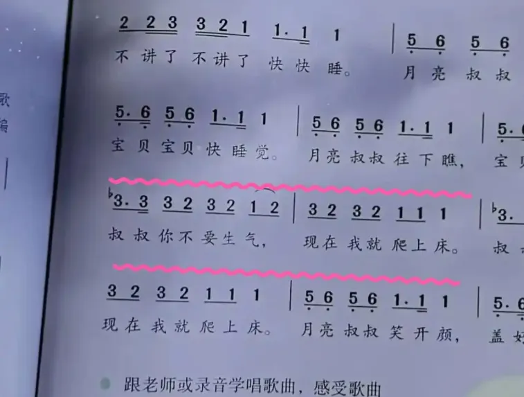 咱们天天教孩子“背心裤衩盖住的地方不能让人碰,不要跟陌生叔叔单独待在一起”,结果音乐课本里唱着“叔叔别生气,我这就上床”——这不是打自己脸吗?