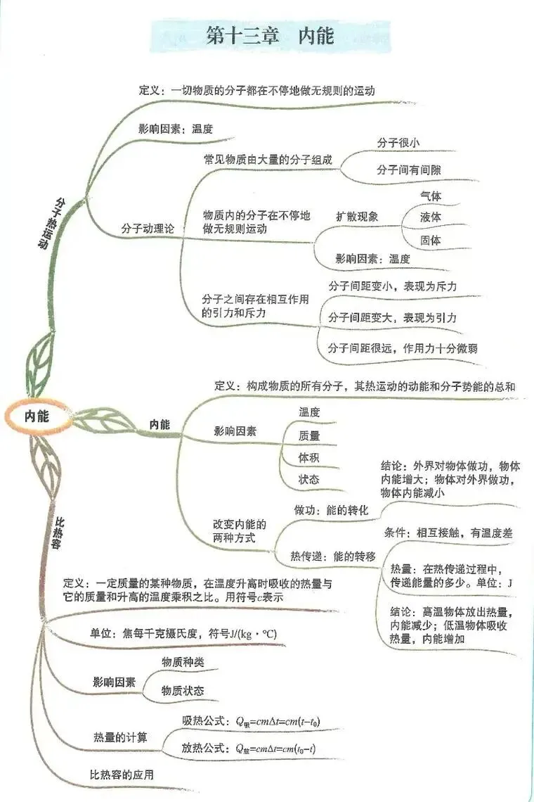 二、热学:包括物态变化(熔化、凝固、汽化等)、分子热运动、比热容、内能及其转化、热机效率等。
