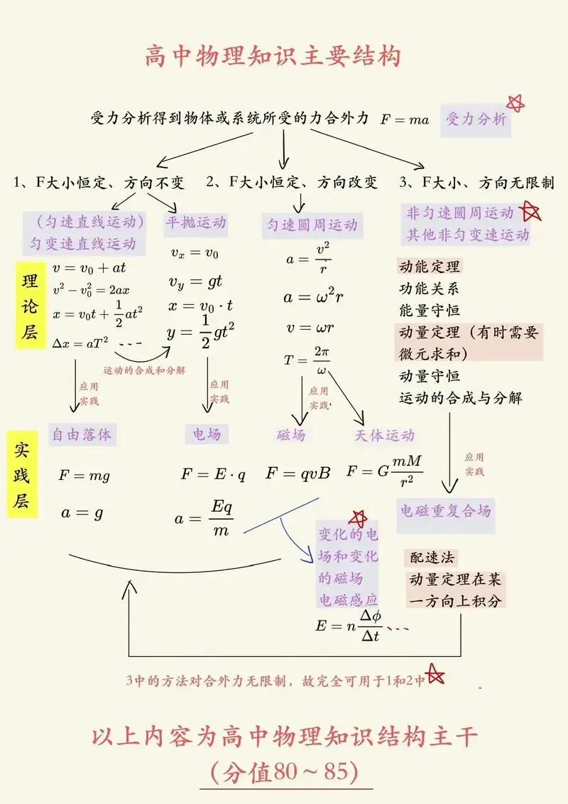 初中物理各知识模块(如力、热、光、电)相对独立,彼此联系较小,学习时可以“就事论事”。而高中物理的知识点环环相扣,形成严密的知识体系。例如,高一学习的运动学和牛顿定律是高二电学中分析带电粒子运动的基础,一个知识点未掌握,会引发后续学习的连锁困难。