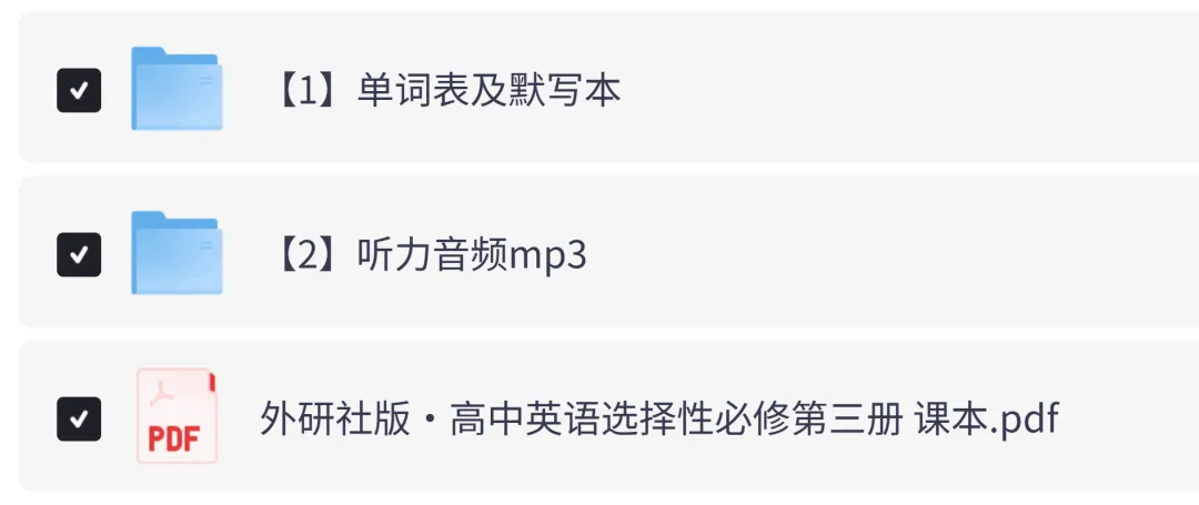 外研社版高中英语选择性必修三电子课本教材+单词表+单词默写表+听力音频完整版(2026年新版教材),可下载打印!