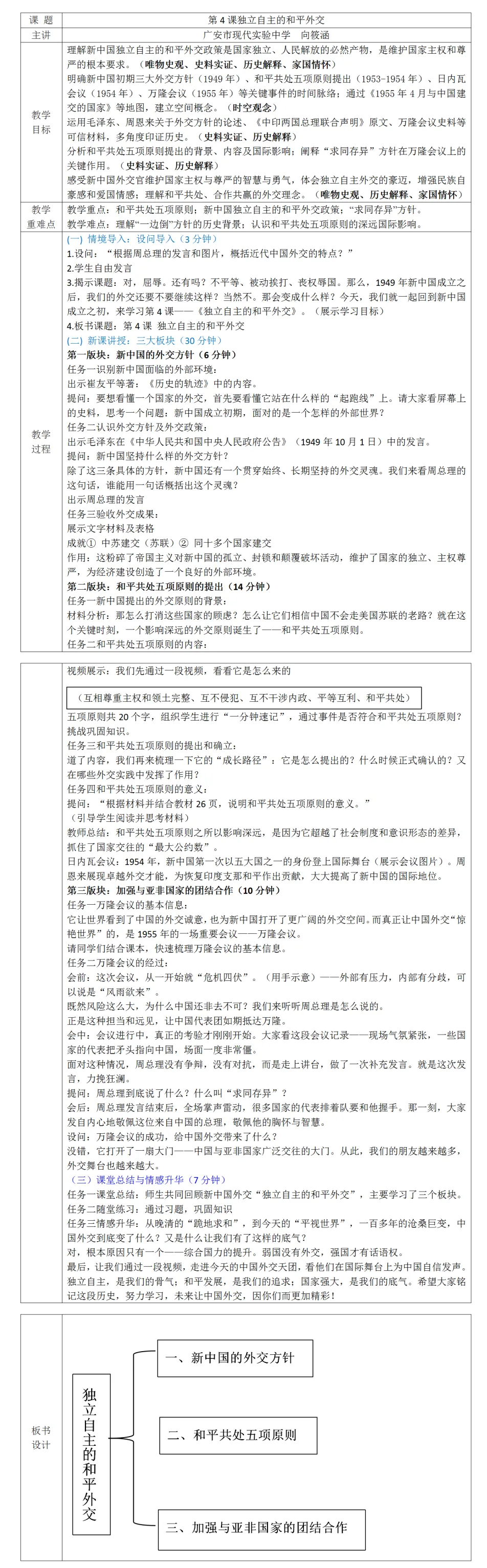 新修初中统编历史教材教学实施主题研修八年级下册《 第4课 独立自主的和平外交》