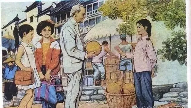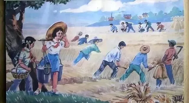图里一大群人在地里抢收麦子,女人肩上扛水桶,孩子手里拿着草帽,不分男女老少都下力气,那年头,谁家有个力气大的主儿都成宝贝,收粮食就是头等大事,麦子扎堆一堆堆,镰刀唰唰响,汗一滴就顺着脖子流进衣领,现在的麦田里全靠机器,切割打包不到午饭功夫,人是轻省了,可“汗滴禾下土”的味儿也淡了,家里饭桌上没人再说“别剩”,粮食看着管够,心反而没以前那劲儿。