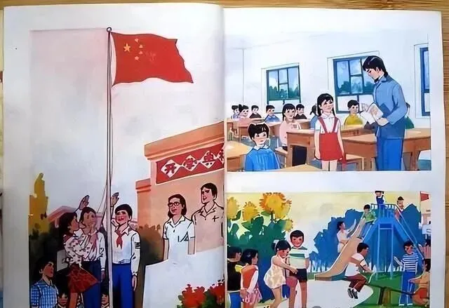 图里这个升旗场面,穿红领巾的都是班干部,拉绳子的时候手掌都抠出汗来,旗一飘起来,大家的脑袋齐刷刷仰着,老师带着齐唱国歌,声音有大有小,有跑调的还自个儿傻乐,课间操更不用说,一队人头晃晃悠悠,后面偷偷摸摸打闹,那时候没有花里胡哨的体育服,男孩女孩一水儿短袖短裤,跳绳、爬滑梯、丢沙包,每节课最眼巴巴等的就是老师喊“下课”,现在孩子的课间变成了补习和手机,操场冷清清,就是哪怕操场上摔倒哭了,回家照样挨老娘一句“活该,跑慢点”,也是种自在。