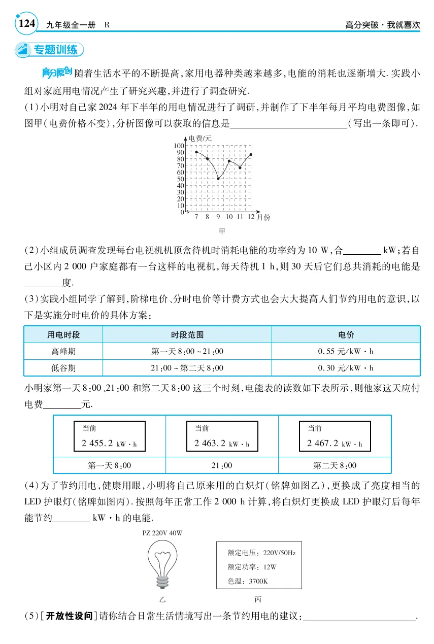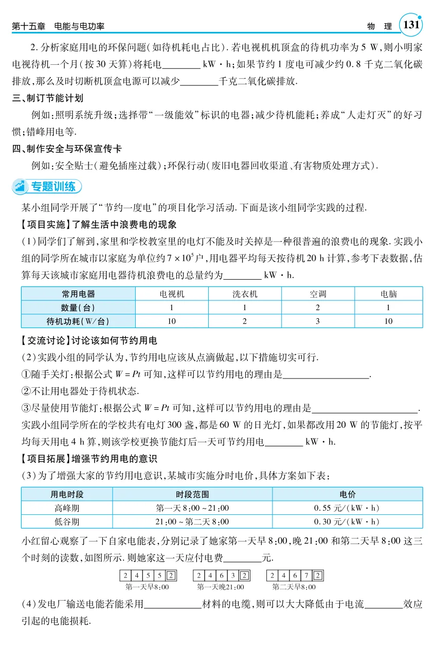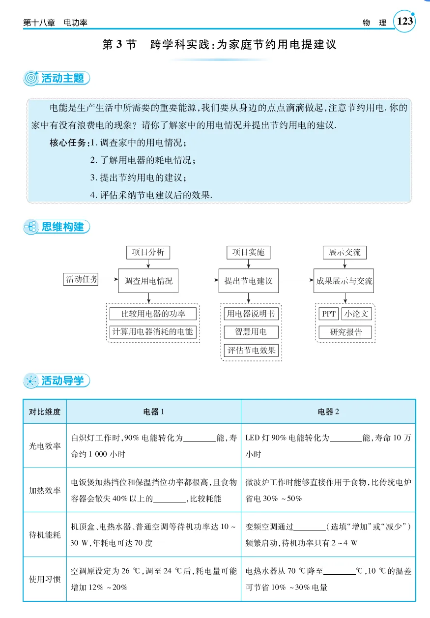 素材来源:人教版《十八章电功率第3节 跨学科实践:为家庭节约用电提建议》