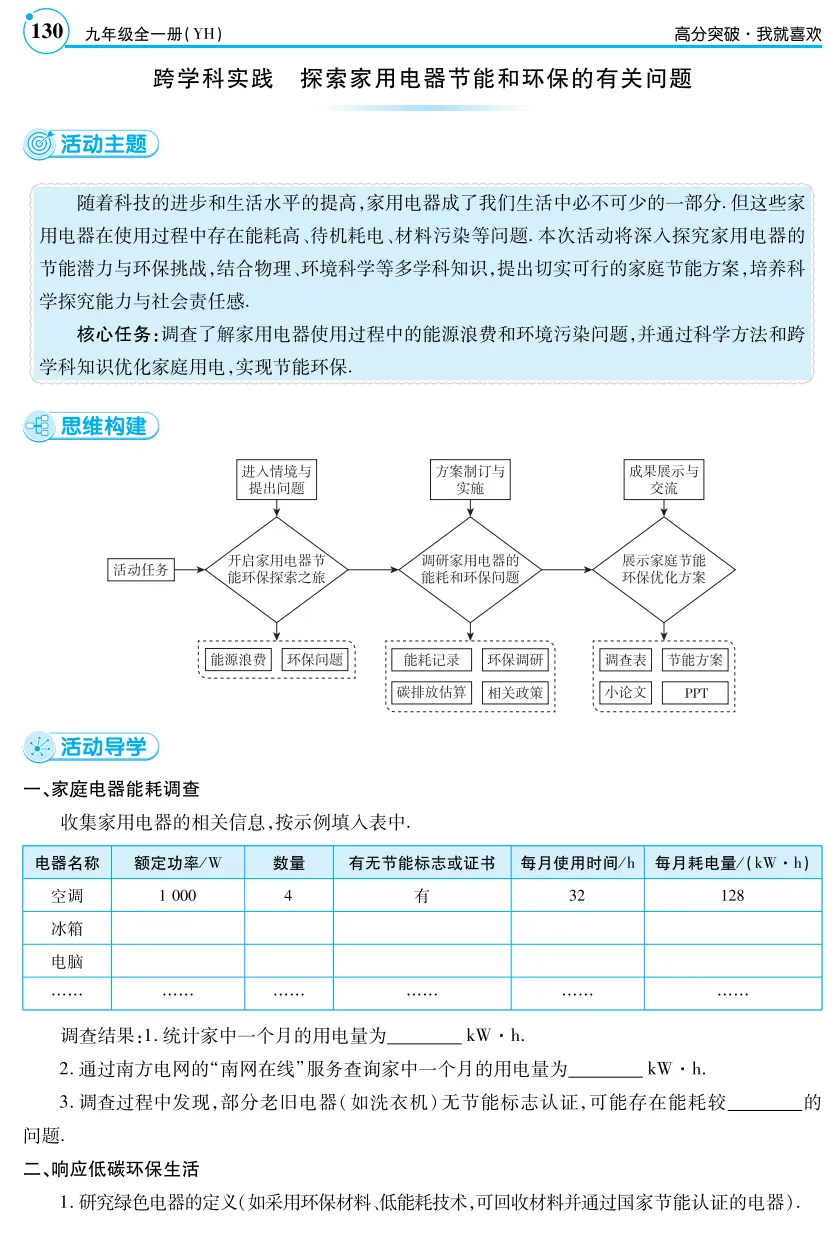 素材来源:粤教沪科版《第十五章电能与电功率跨学科实践:探究家用电器节能和环保的有关问题》