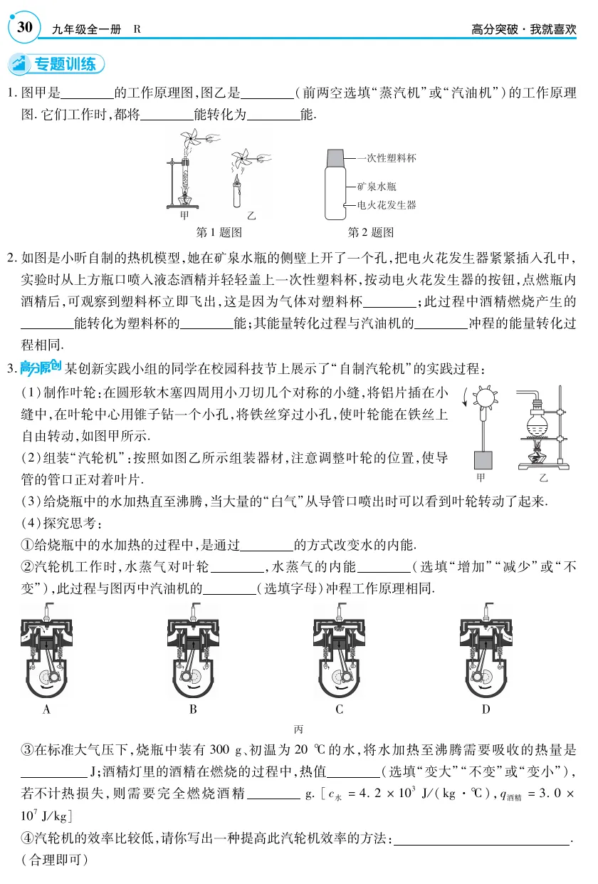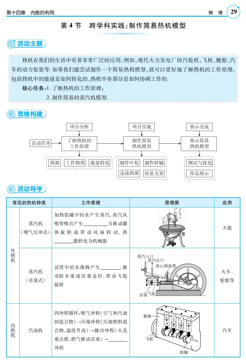 素材来源:人教版《十四章内能的利用第4节 跨学科实践:制作简易热机模型》