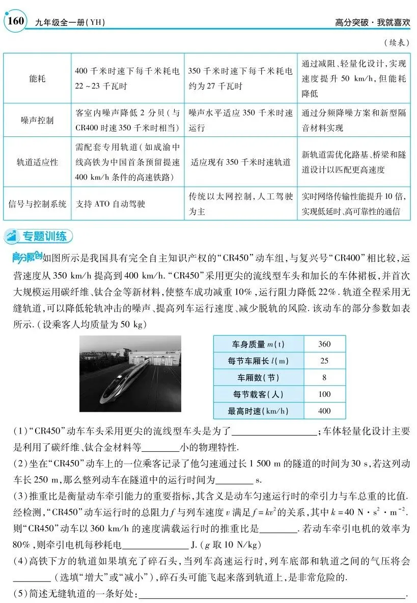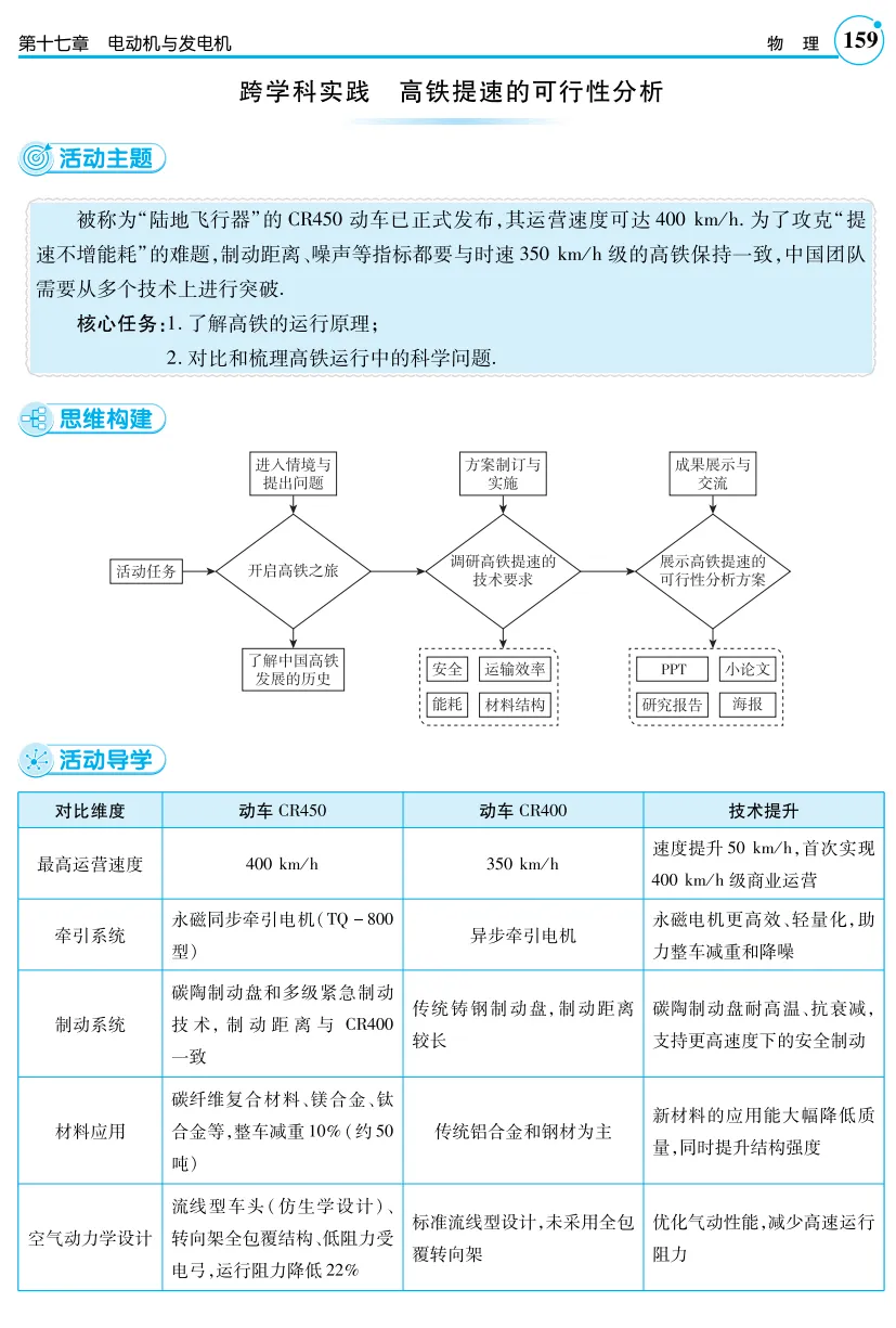 素材来源:粤教沪科版《第十七章电动机与发电机跨学科实践:高铁提速的可能性分析》