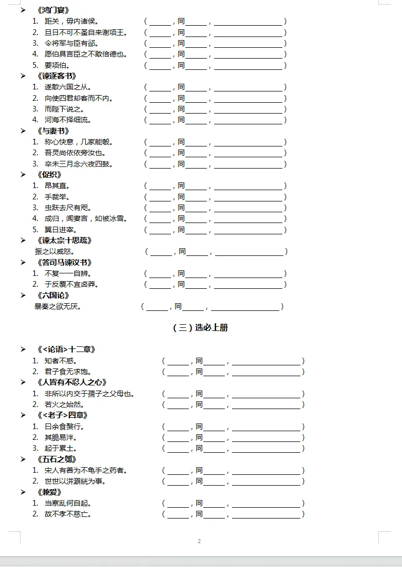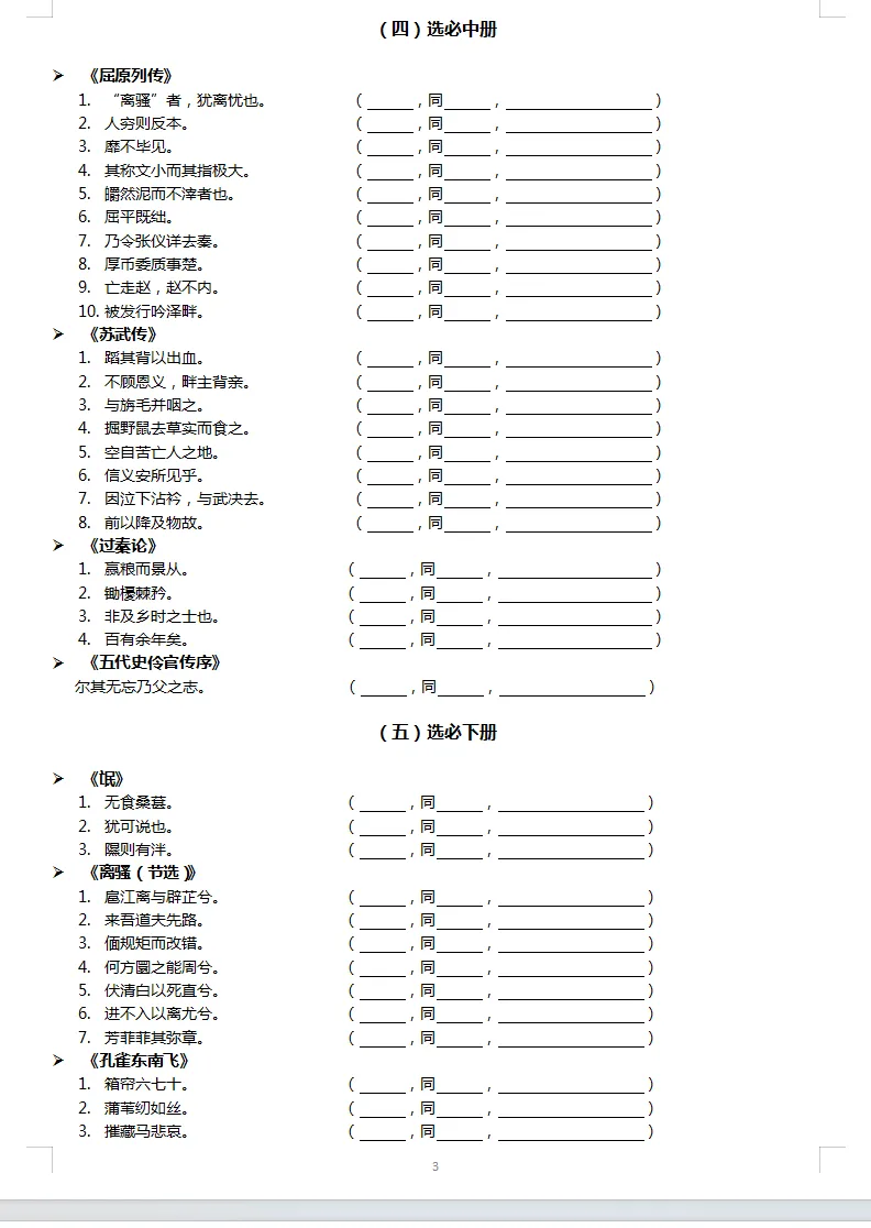 2026届高中全五册教材通假字梳理(检测版)