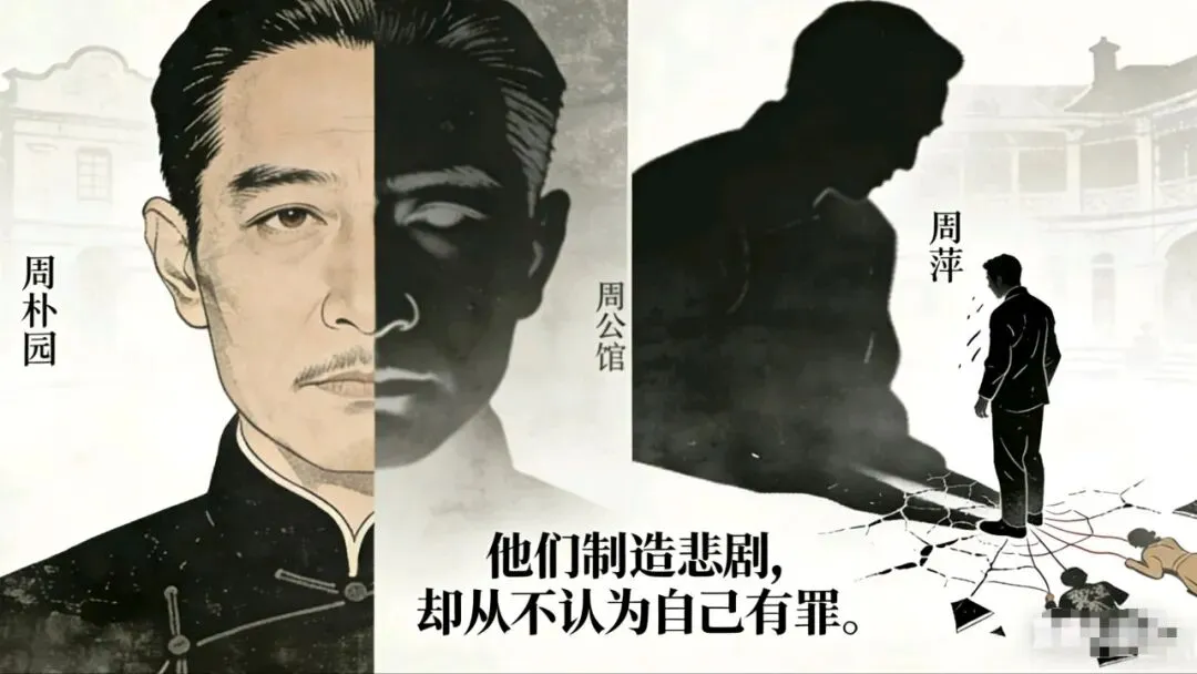 悲剧根源:极端的自私与控制欲。他将家庭成员视为私有物与秩序符号。他对繁漪的“关心”是命令她吃药,实质是逼迫她就范。他毁灭了所有真实的情感,制造了一屋子的行尸走肉。