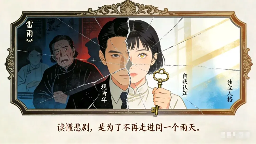 核心警醒:古典诗词歌颂了爱情的美好形态与至高境界,而《雷雨》则补上了残酷而必要的一课:所有这些美好的前提,是爱的主体必须是健全的“人”。一个拥有独立自我、健全人格、承担责任能力的“人”。否则,爱情这个人类最美好的情感,极易蜕变为占有、控制、依赖、逃避和毁灭。