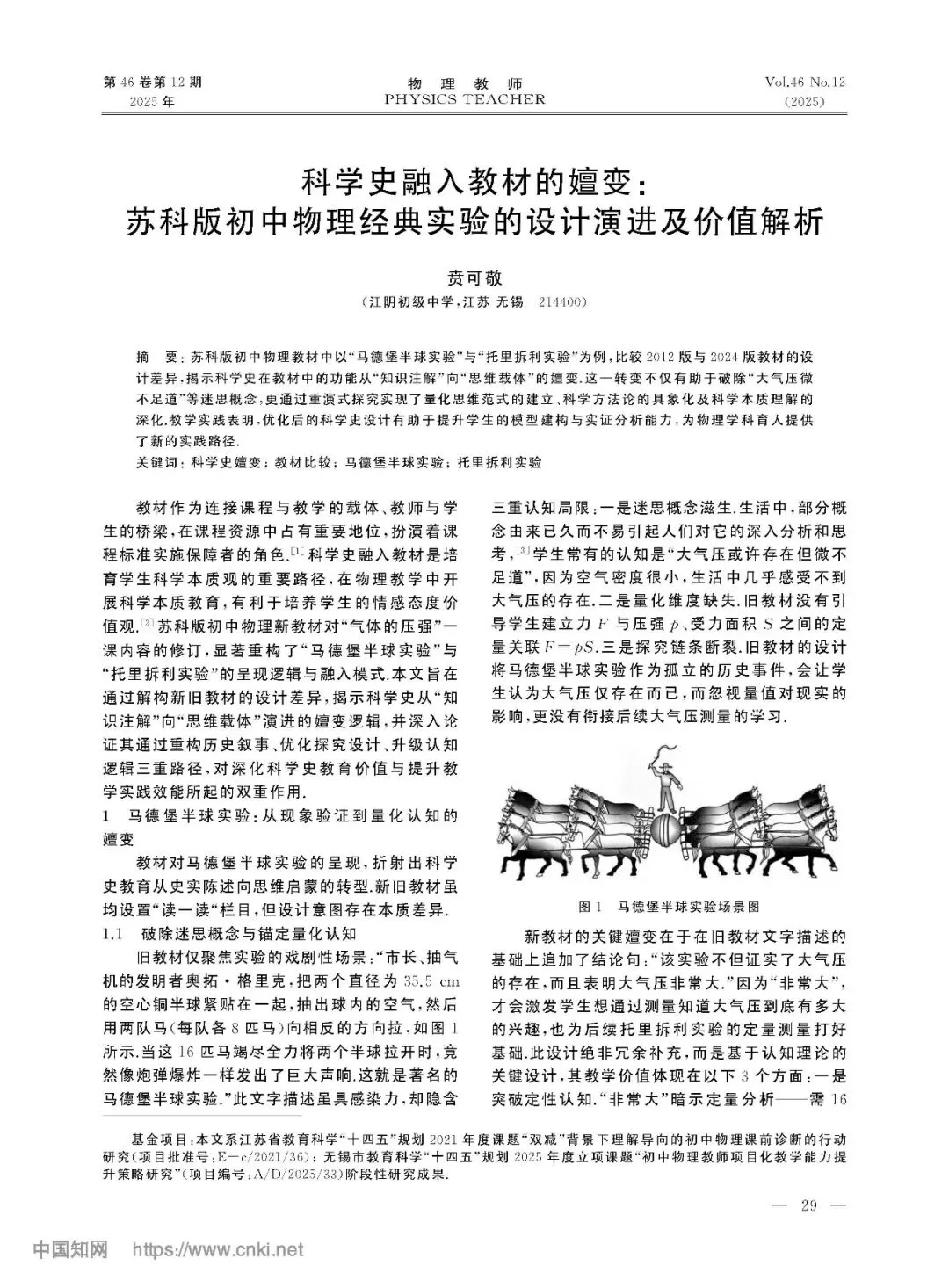 >【教学素材】科学史融入教材的嬗变:苏科版初中物理经典实验的设计演进及价值解析