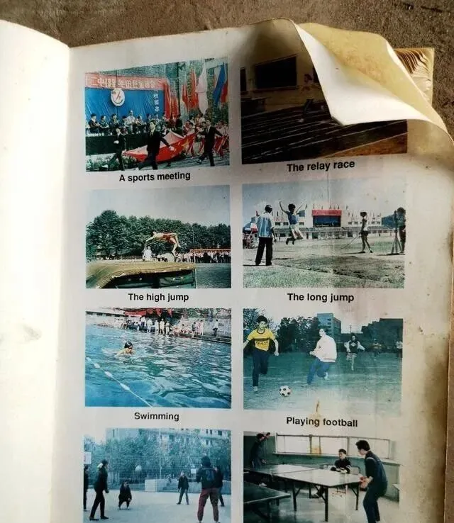 最后一张老照片,体育课什么赛跑跳远游泳全带英文字母,学生在操场上排着队,老师吹着口哨自己拿英语单词默写表,看得人热血起来,放学路上背一嘴"high jump"、"long jump",兄弟几个挤着笑,说以后无论干啥,不会忘了这本烂熟的老书。