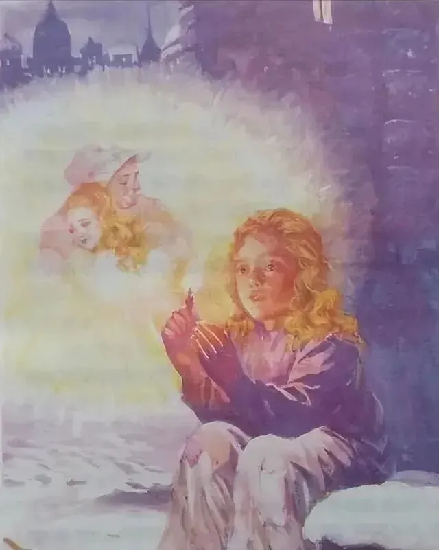 这幅紫色调插画,卖火柴的小女孩,棉衣单薄,双手捧着小火苗坐在雪地上,没几个人第一次读到结尾不咬嘴唇忍着不掉泪,寒风咧着脸,小姑娘还有个微笑,看得出来希望在火光里一点点灭掉,女同学直接哭了出声,老师也没多说,只是轻轻讲一句“愿世界上的孩子都能吃饱”,至今觉得那是课本最温柔也是最冷的画面。