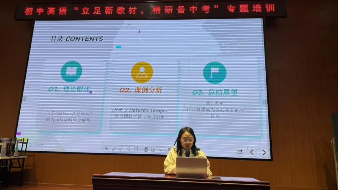 杨璐老师的主题讲座《基于主题意义探究的初中英语支架式听说教学实践》系统阐述了基于主题意义探究的支架式听说教学策略,针对当前听说教学“学用分离”的痛点,提出了情境、语言、策略三个维度的支架搭建路径。她以“台风凤凰袭击台州”等真实案例为例,展示了从感知到体验到迁移的情境链设计,并强调“先扶后放”的教学原则,帮助学生在逐步撤除支架的过程中实现自主表达。讲座中还结合八下Unit 5 Section A 1a-1d的具体课时,详细拆解了词汇、句型、功能用语等语言支架的渐进式呈现方式,为一线教师提供了可复制、可操作的教学范式,让核心素养在听说课堂真正落地。