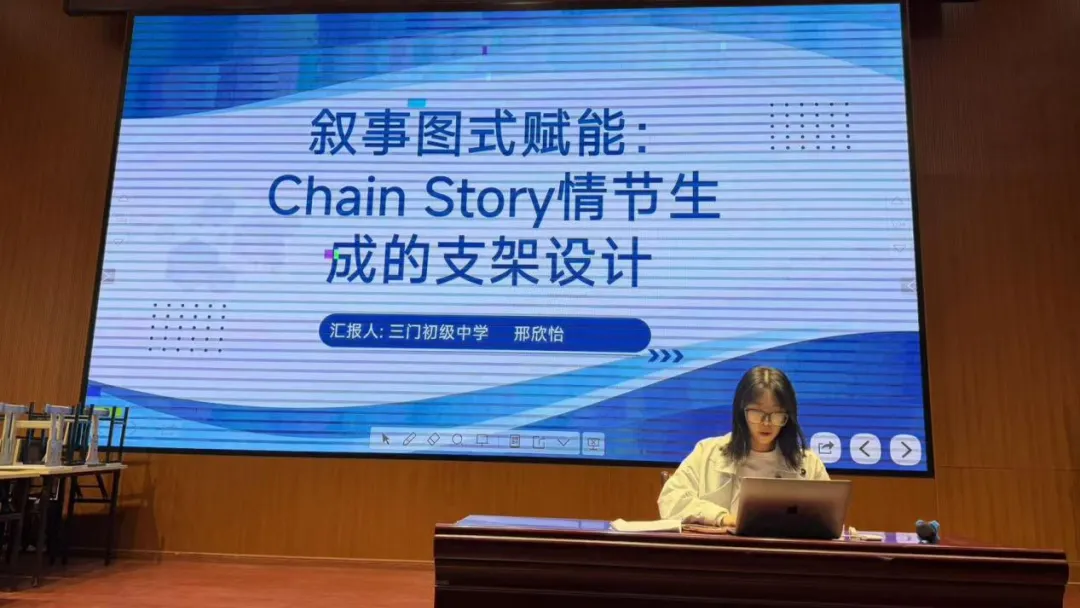 邢欣怡老师针对初中英语Chain Story(故事接龙)教学中学生叙事能力薄弱、结构松散、内容扁平等问题,引入法国叙事学家格雷马斯的叙事图式理论,设计了“解构—建构—重构”三阶教学流程及配套支架工具。她将叙事过程归纳为“产生欲望、具备能力、实现目标、接受评判”四个阶段,并据此开发问题链、四维度分析表、能力分析表、叙述方法思维表及评价量表。在解构阶段,引导学生梳理原文结构;在建构阶段,通过助力与障碍双向分析、行动设计及“展示”与“讲述”手法选择,帮助学生生成有逻辑的情节;在重构阶段,借助内外双重评判维度和六层问题链,促进主题升华与自评互评。她强调,该支架使叙事理论教学化、流程工具化,有效降低Chain Story创作难度,培养学生叙事思维与即时创作能力,实现从知识传授到思维培养的转变。