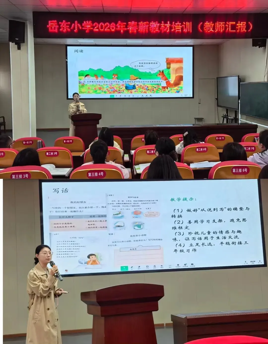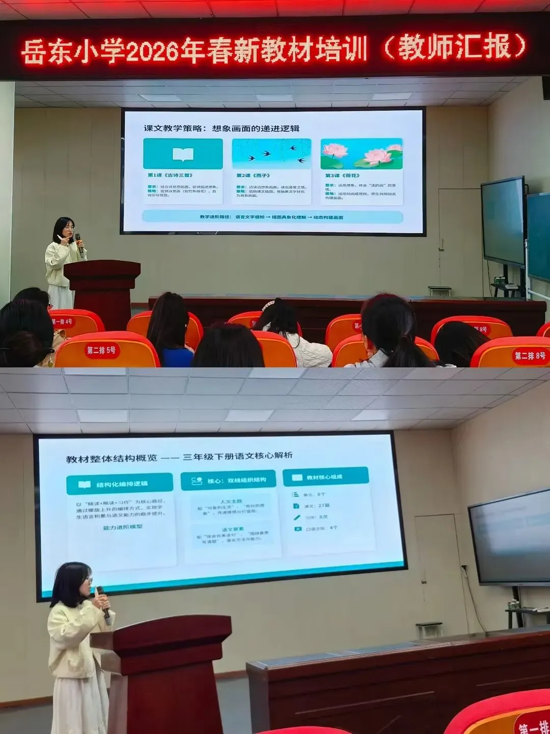 为深入领会新版教材编写理念,精准把控各学科教学方向,切实推动新教材教学理念落地课堂,近日岳东小学开展新教材培训汇报交流活动,全体教师共同参与,分学科共研教材、共促教学提升。
