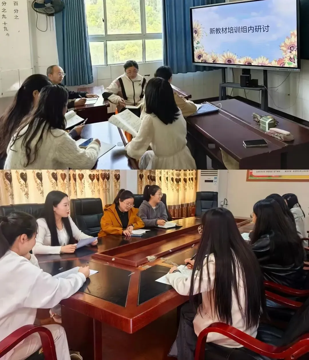 本次活动以新版教材解读为核心,搭建教师教研交流平台,旨在帮助全体教师吃透教材内容、明晰教学重难点,将教材培训成果转化为课堂教学实效。活动按照语文、数学、英语分学科依次开展汇报,随后进行组内研讨,最后提出要求并总结,全程有序推进、氛围浓厚。