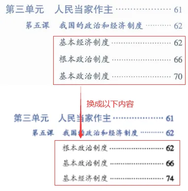 注:原62—65页基本经济制度内容调至74—77页,原66—77页根本政治制度和基本政治制度调至62—73页。 第70页