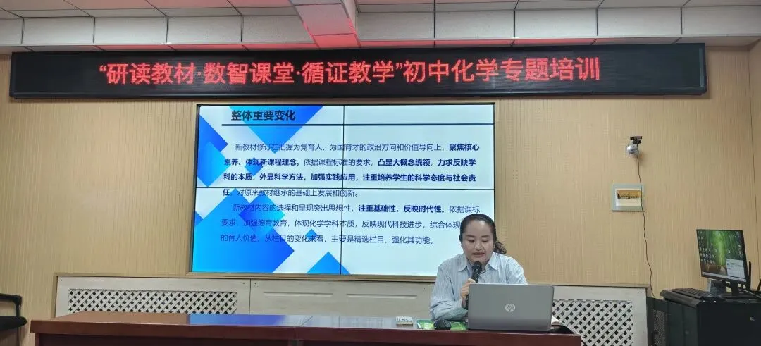 为深入推进化学课程改革,帮助我县初中化学教师准确把握新教材理念,促进教学与数智技术深度融合,实现基于质量监测结果的精准教学改进,3月19日,林西县教育教学研究中心组织举办了“研读教材·数智课堂·循证教学”初中化学专题培训活动。全县初中化学教师齐聚教研中心一楼会议室,参加了本次活动。