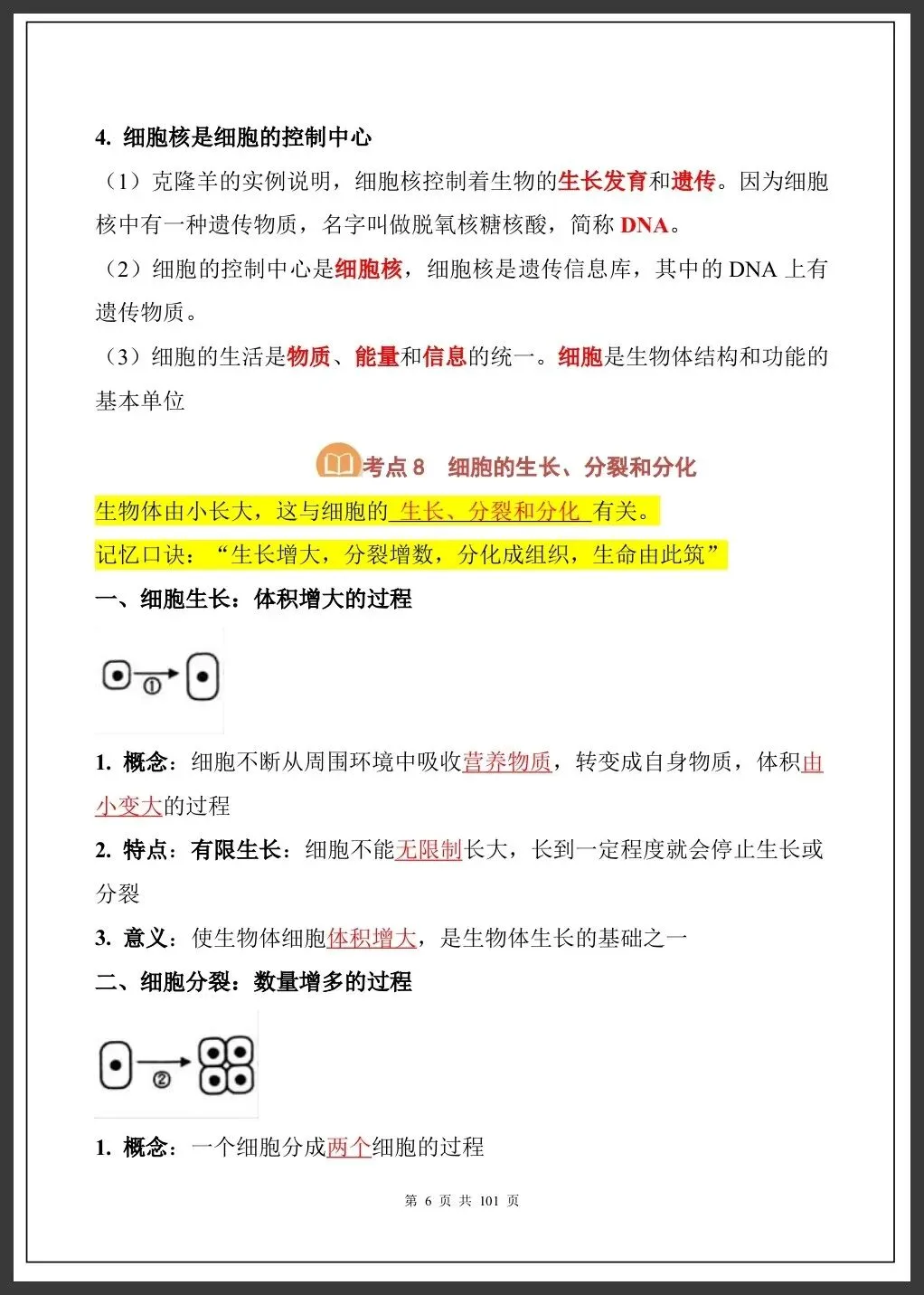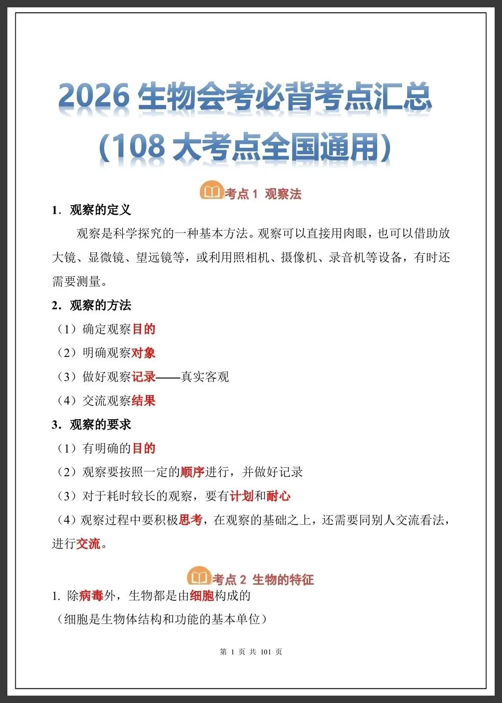 今天整理了2026 新教材初中生物会考《必背重点考点汇总》电子版可打印!