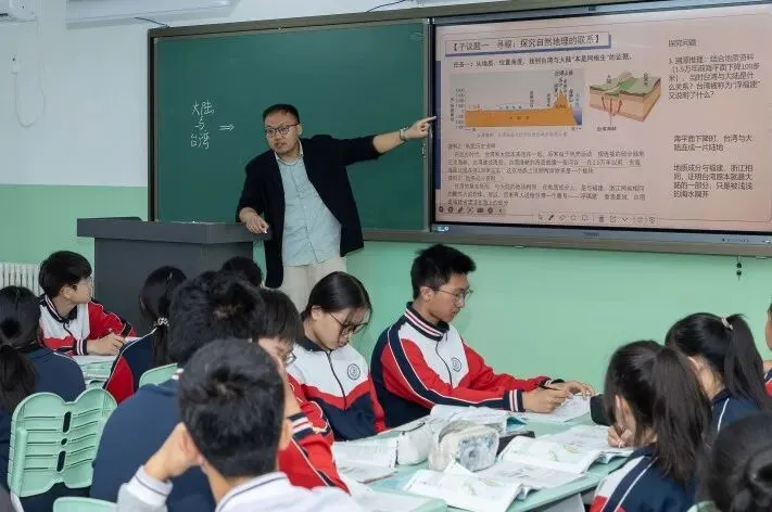 在本次教研活动中,首先由我校张旭华老师展示了《台湾省》示范课。张老师以“台湾为什么是我国不可分割的一部分”为总议题,从地质位置、农业合作、文化根脉、历史民生四个维度展开探究。学生通过分析台湾海峡地形剖面、地质资料和金门供水工程等素材,在层层递进的问题链中自主构建起“地脉、农脉、文脉、史脉”四脉合一的综合证据链,实现了从知识习得到素养提升的跨越。