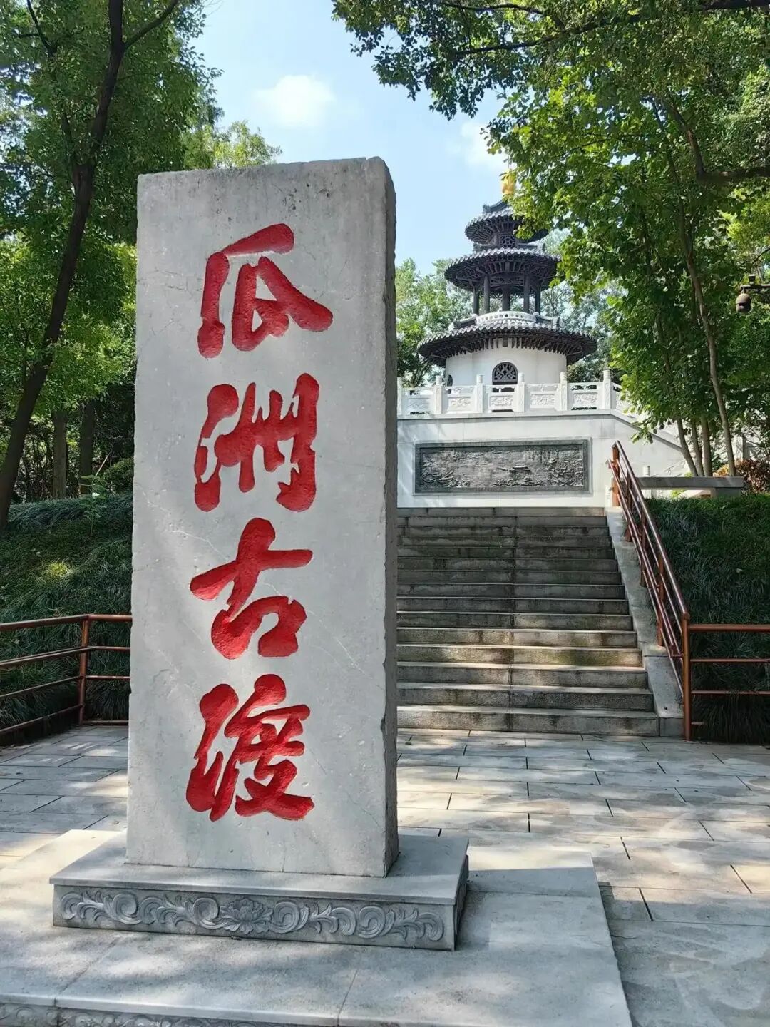 瓜洲,地处长江与京杭大运河交汇处,是中国唯一一座位于长江与运河交汇处的古镇。这里曾是"漕运咽喉",每年过往船只高达百万艘,商贾云集,"半天下之财赋,悉由此路而进"。然而这座千年古镇命运多舛。自康熙年间开始坍江,到光绪二十一年,曾与滕王阁、黄鹤楼、岳阳楼并称长江名楼的瓜洲大观楼、乾隆赐名的锦春园等名园,全部坍入江中,了无踪影。如今的瓜洲,是民国初年在江口街、陈家湾、四里铺重建的新生之地。瓜洲古渡公园:南北两园,各藏乾坤