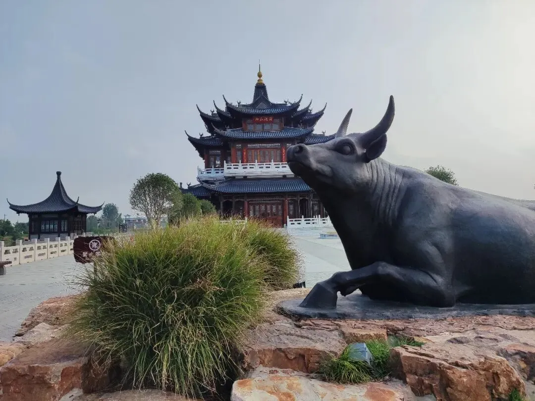 北园——文物古迹聚集地。这里有彤云阁(北园核心地标,三层重檐仿古建筑,高约26米,采用官式做法,钢木混合结构,内设电梯,可登高览胜,远眺长江与运河)。还有镇水铁牛、江风山月亭、镜水堂等景点,与古运河风光带连成一片。南园——真正的瓜洲古渡遗址。这里是当年漕船渡江的原址,有御碑亭(康熙题"瓜洲渡"碑)立于江边,沉箱亭(相传为"杜十娘怒沉百宝箱"投江处,亭内石碑记述着杜十娘怒斥负心郎、怀抱百宝箱投江的悲剧故事),可见银岭塔(曾为灯塔,为航行在长江与运河间的船只引航),感受"京口瓜洲一水间"的壮阔。张若虚与《春江花月夜》
