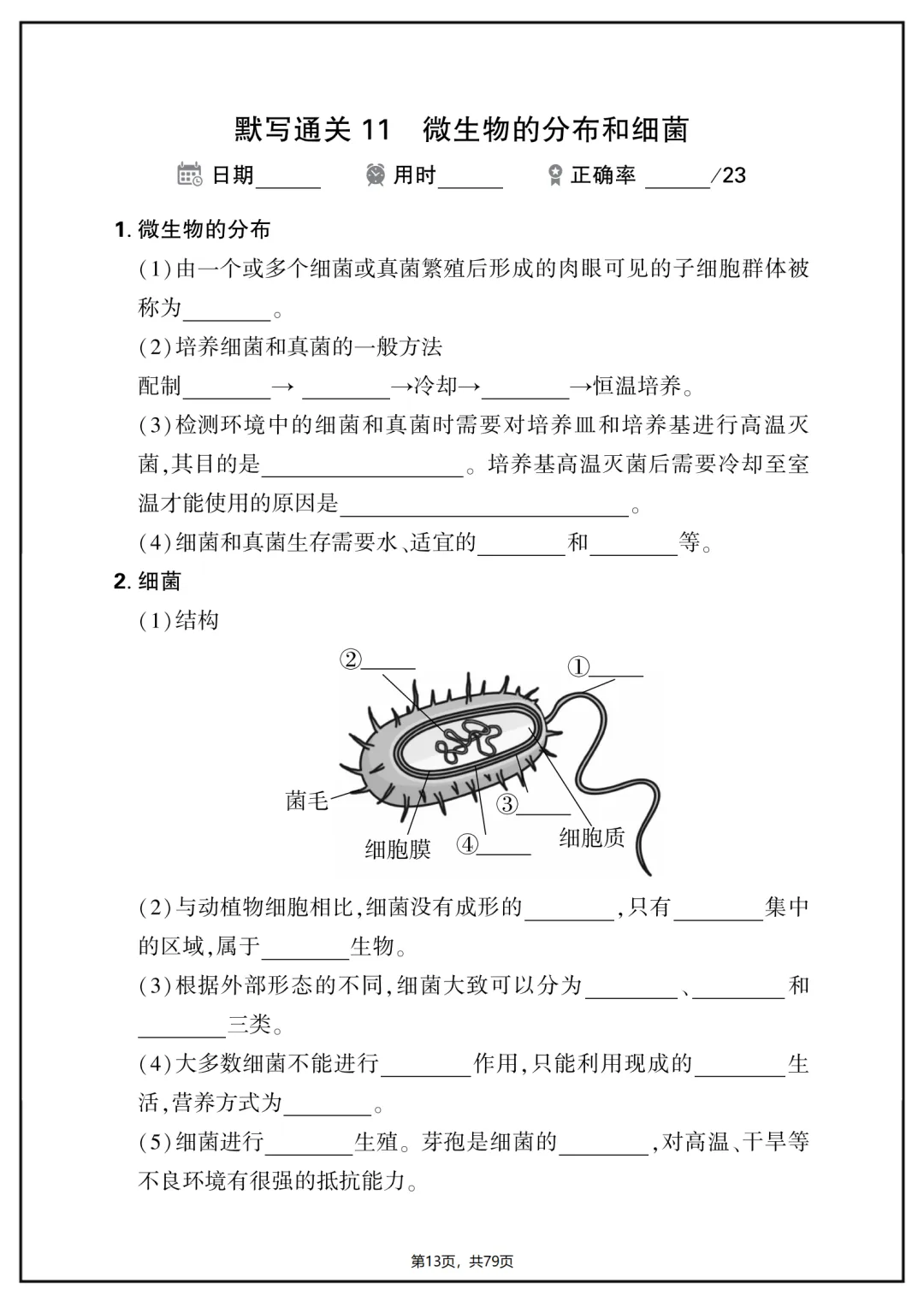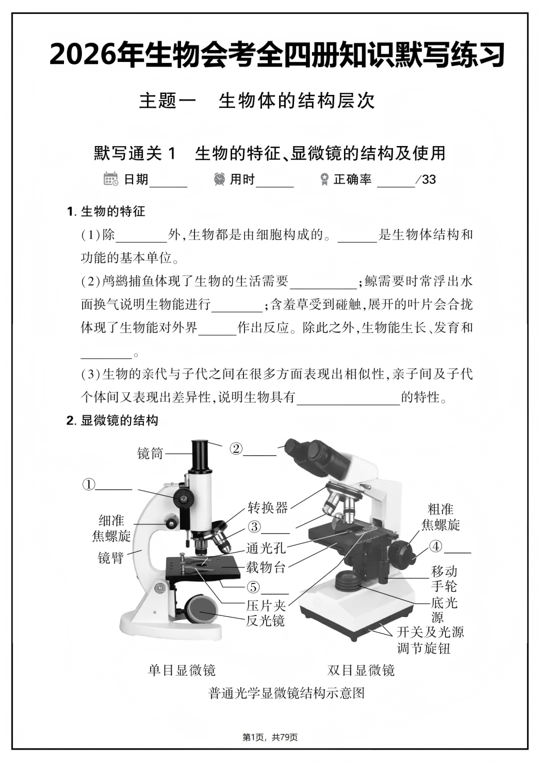 【新版本】新教材 2026 初中生物会考核心知识点汇总默写练习,电子版可打印!